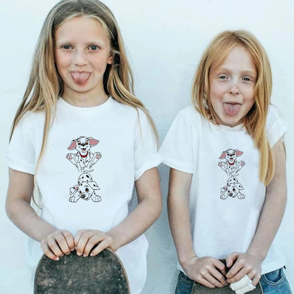 Disney 101 далматинец футболка женская обувь, Новый Винтажный стиль, маленький пятнистый Dogr принт в стиле Харадзюку для детей футболок для всей семьи семья сот ветствующие, одежда