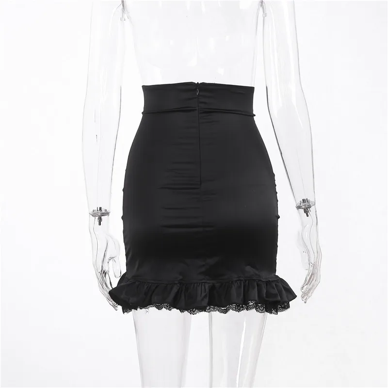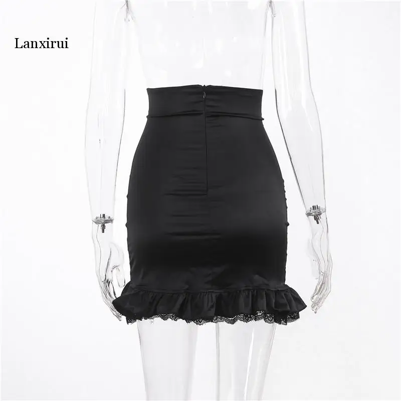 Женская кружевная мини-юбка с запахом, черная облегающая юбка в гот...