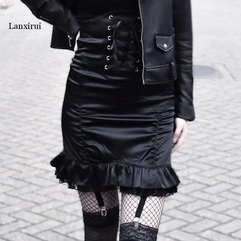 Женские Черные Облегающие юбки-карандаш, готические бандажные юбки ...