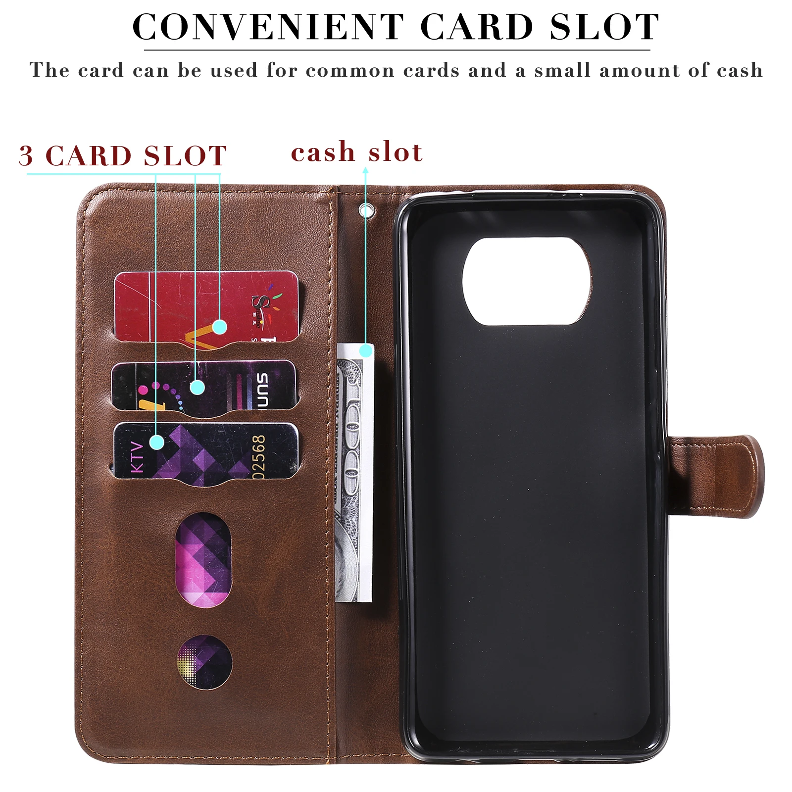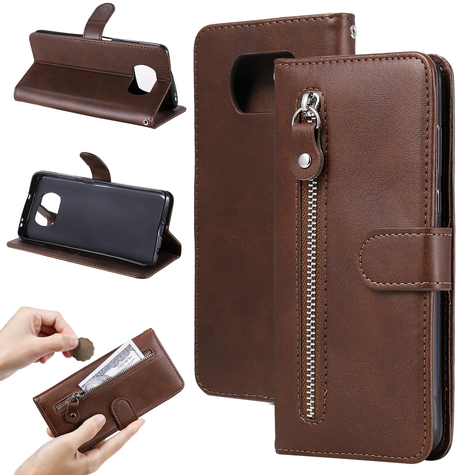 Features1Luxury Leather Zipper Flip Wallet for Xiaomi Mi Poco X3 NFC 10T Pro