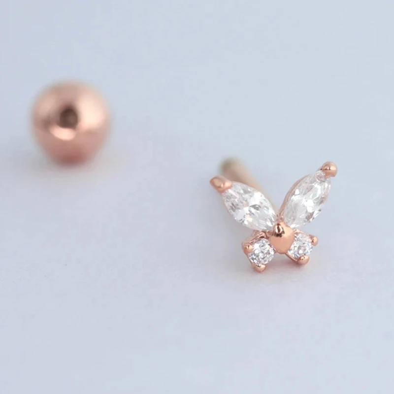 Женские серьги-гвоздики ROMAD S925 из стерлингового серебра со спиральной колонкой и цирконием, креативные ювелирные изделия Золотой пирсинг
