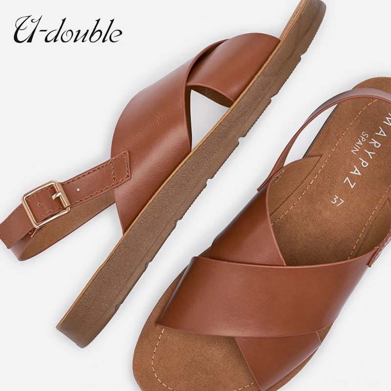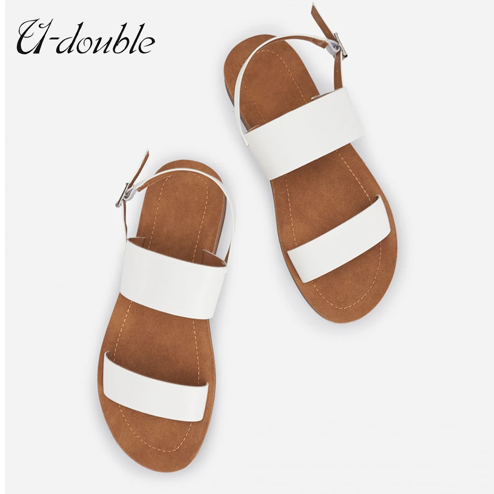U-DOUBLE брендовая летняя модная повседневная обувь, женские сандалии, белые сандалии-гладиаторы в римском стиле, женские сандалии на плоской подошве, большие размеры 36-41