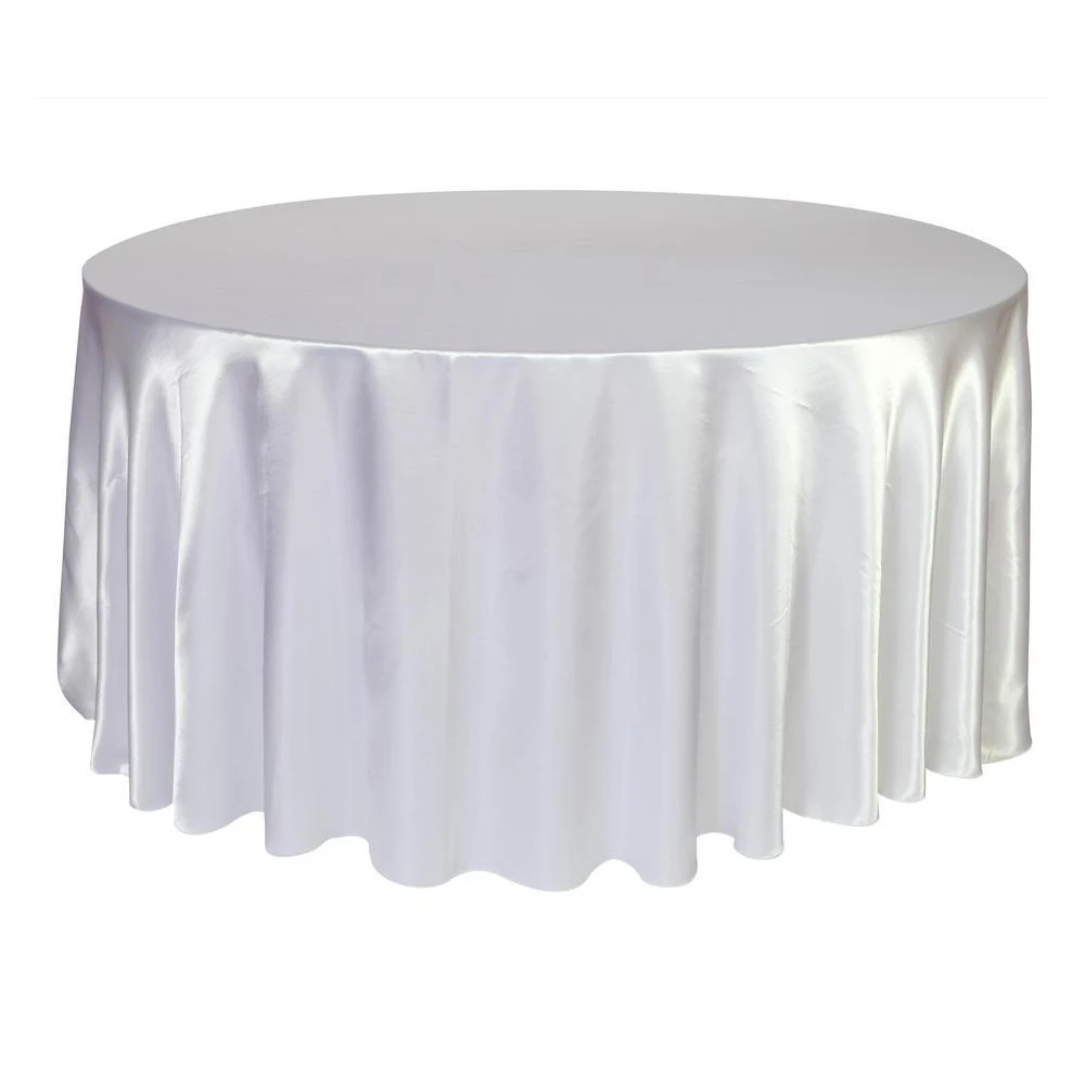 Белая Атласная Скатерть, круглая скатерть 145-335 см, оптовая продажа, элегантные однотонные скатерти для свадьбы, события вечерние, украшения отеля
