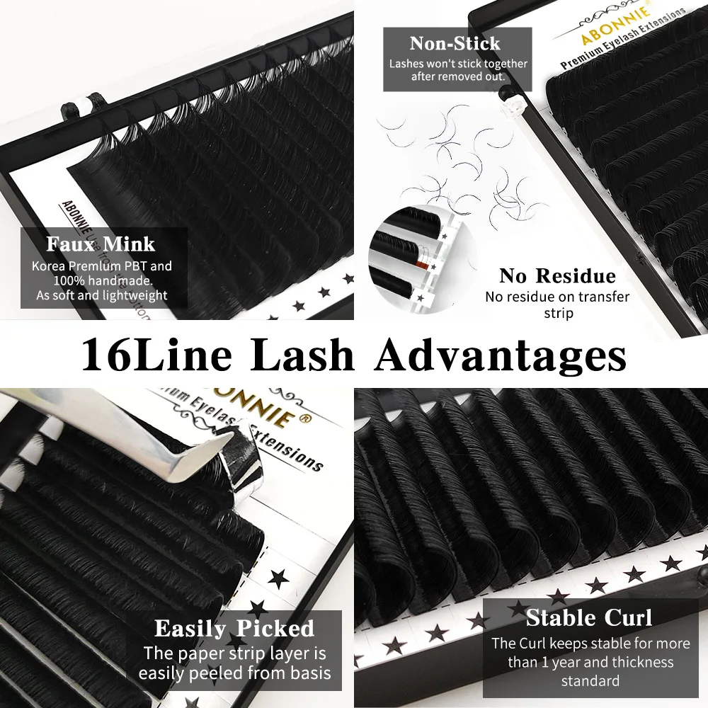 Ресницы Abonnie индивидуальные для наращивания, норковые ресницы премиум-класса, ручной работы, 8-17 мм, смешанный макияж, 16 рядов