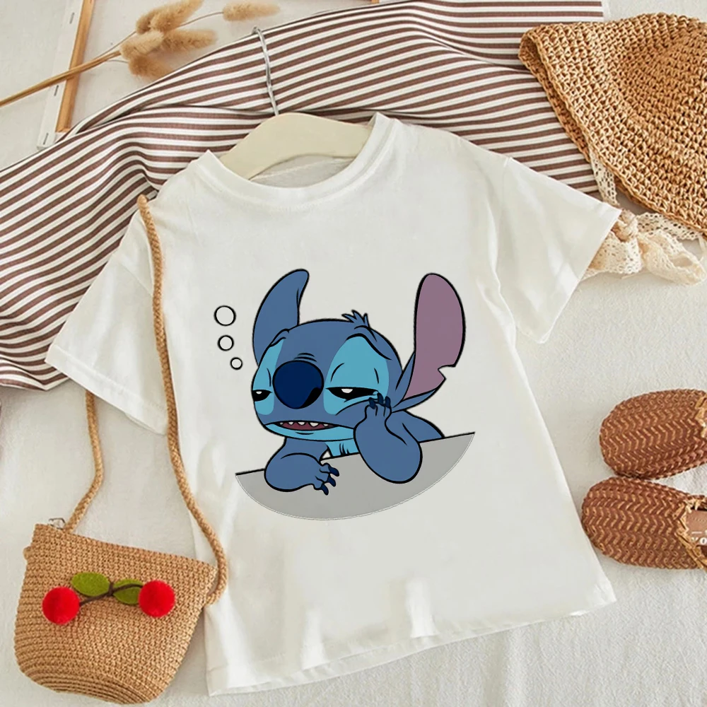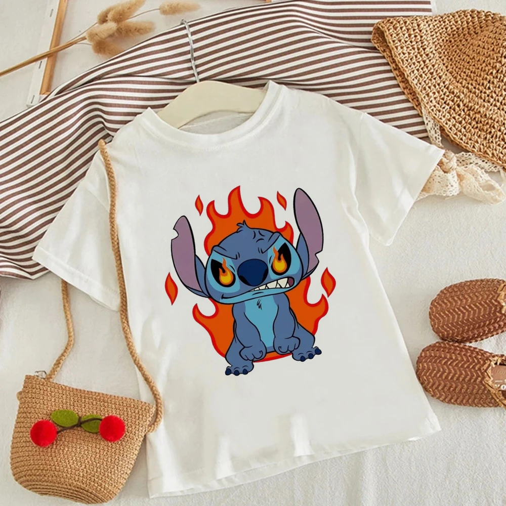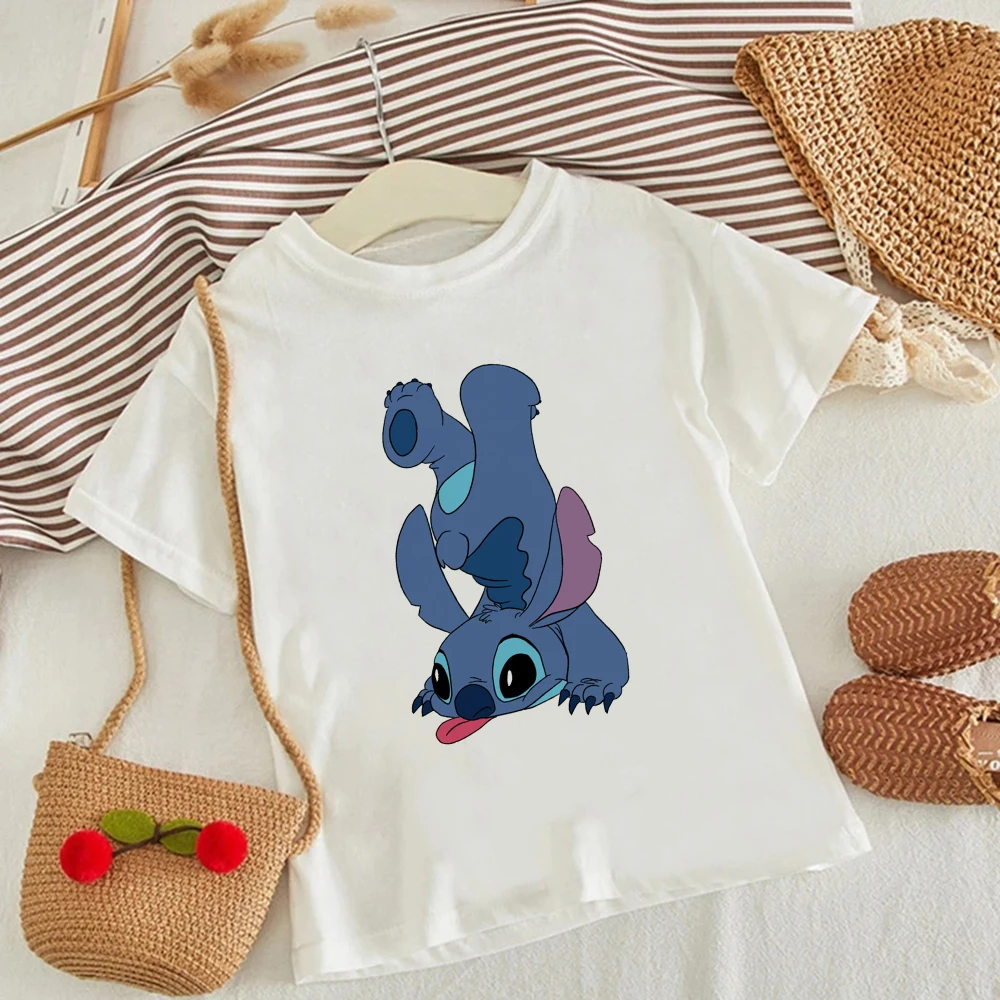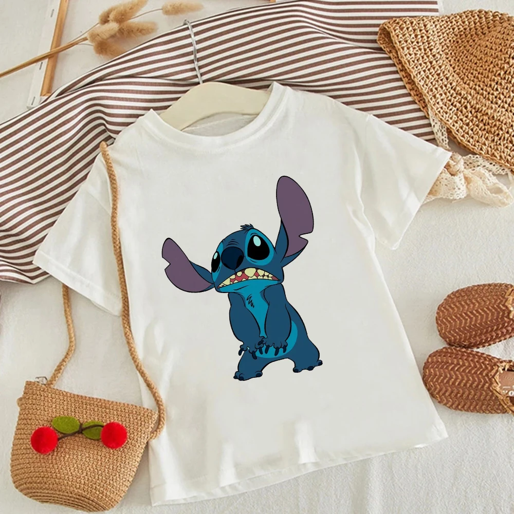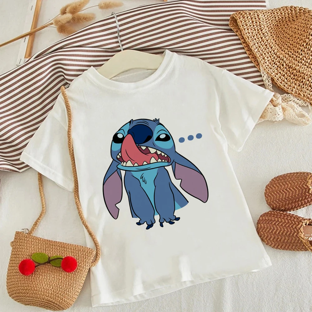 Летняя детская футболка аниме забавная кавайная футболка Лило и Ститч одежда для молодежи Harajuku дикие топы для мальчиков и девочек детские футболки