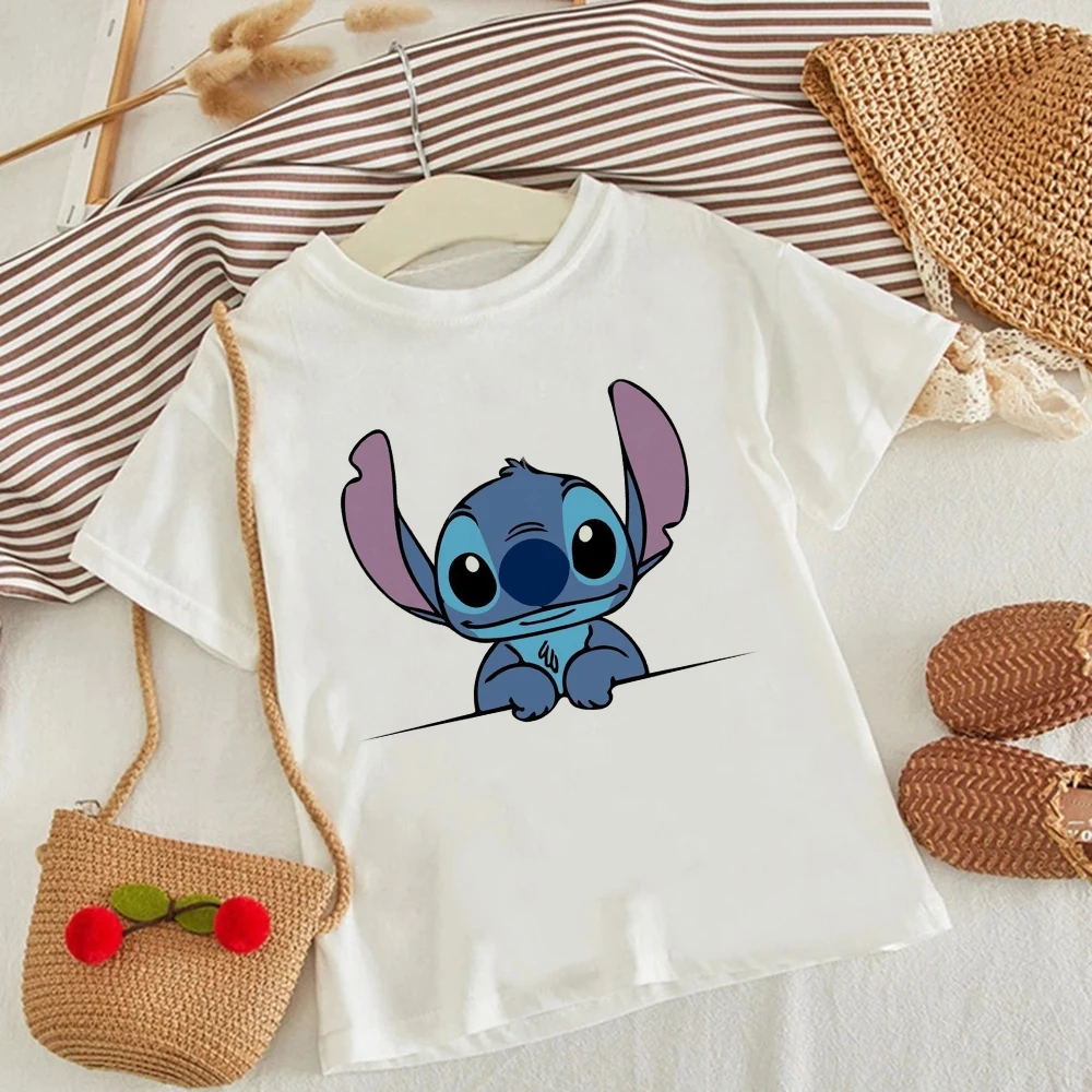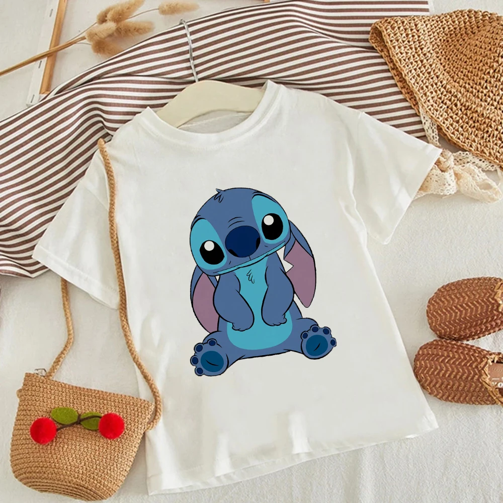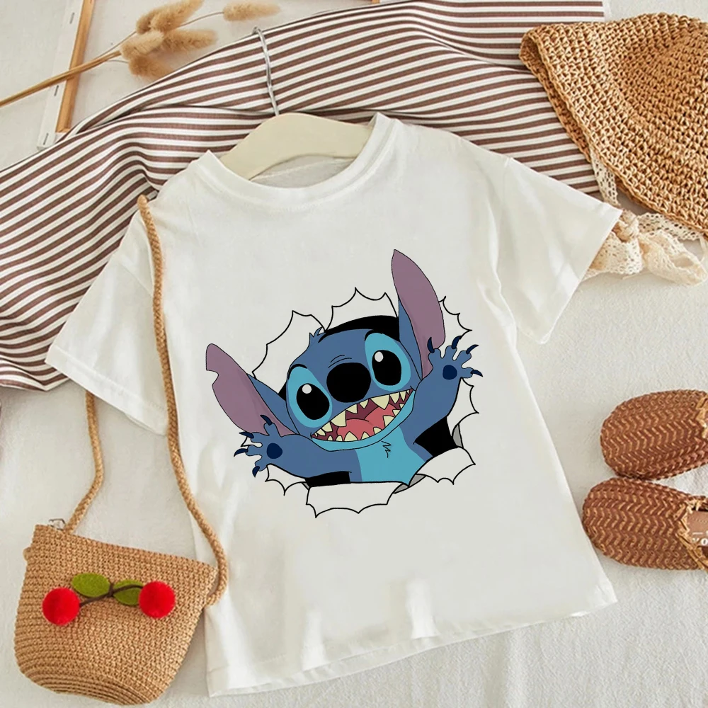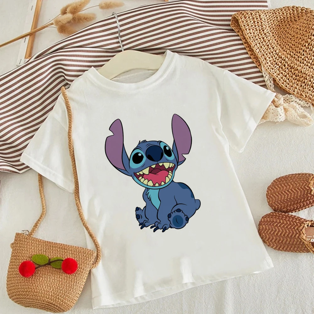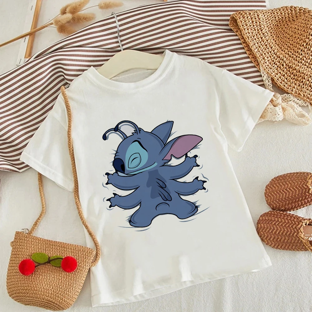 Летняя детская футболка аниме забавная кавайная футболка Лило и Ститч одежда для молодежи Harajuku дикие топы для мальчиков и девочек детские футболки