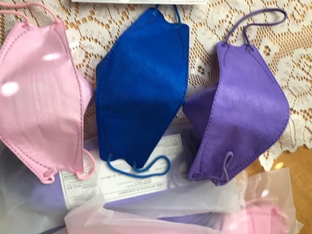 Я заказал 50 фиолетовых, 20 синих, 20 розовых масок, но очень разочаровался по поводу масок, гораздо более темных фиолетовых и всех 90 масок нет штампов ffp2, они не соответствуют описанию, Кроме того, я получил различные синие маски темно-кобальта вместо своих синих масок.
