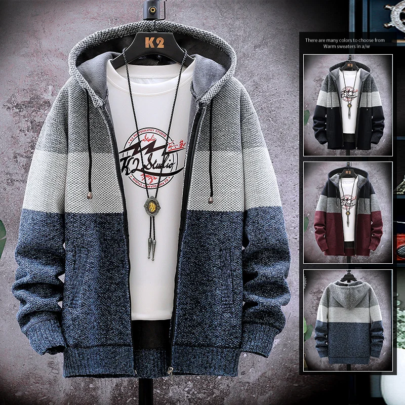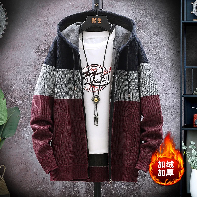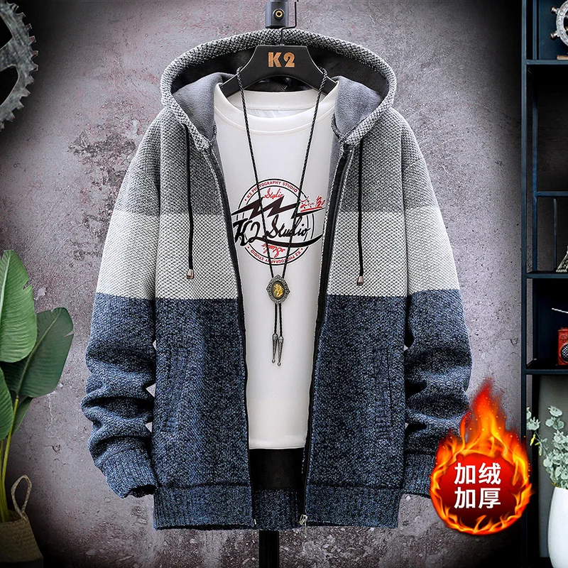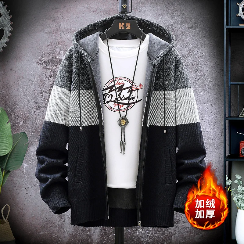 Мужской кардиган, свитер, новинка 2021, весна-осень, свитер с капюшоном, плюшевый утепленный корейский модный свитер на молнии