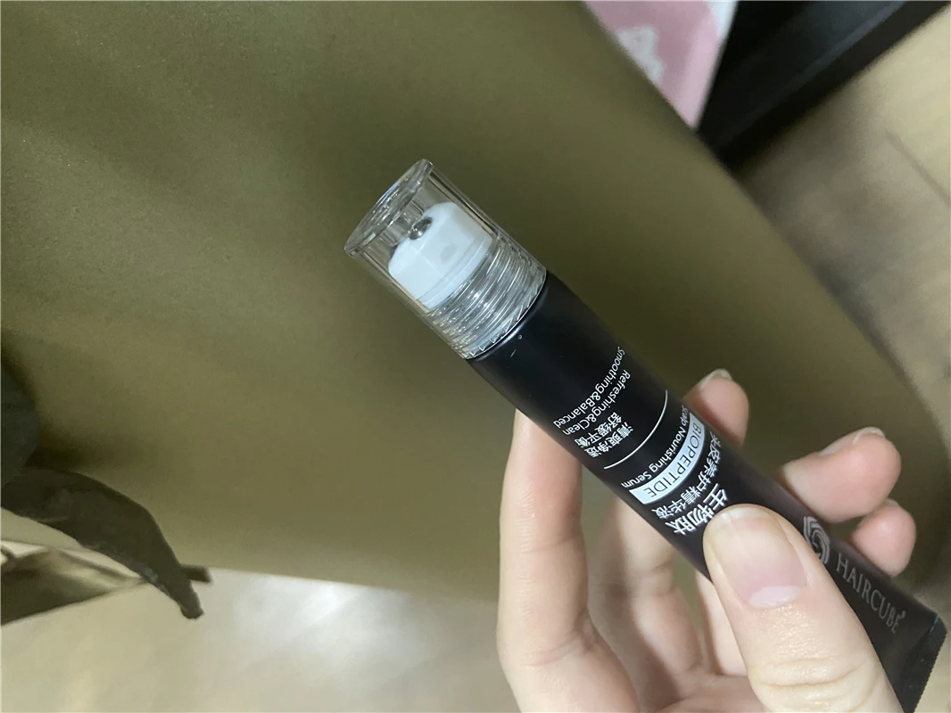 "Это первый раз, когда я купил продукт для филирования волос. У меня очень чувствительная кожа и кожа головы, поэтому моя первая забота была о раздражении и/или сжигании. У меня не было никаких проблем. На самом деле, сыворотка очень приятная на ощупь на коже головы, и она имеет прекрасный, расслабляющий запах."