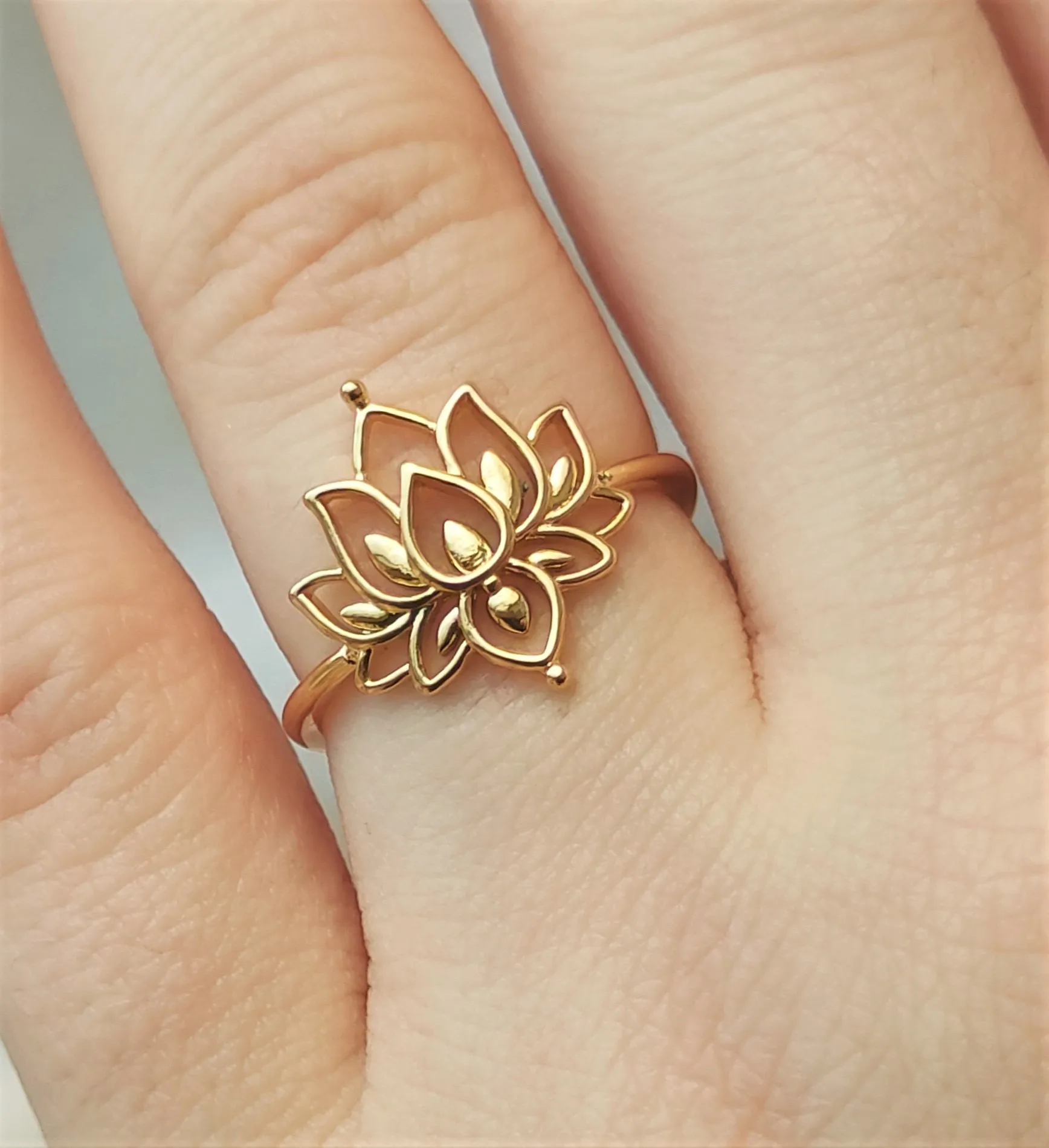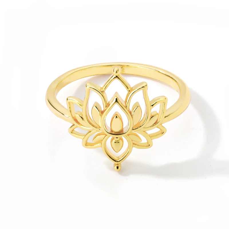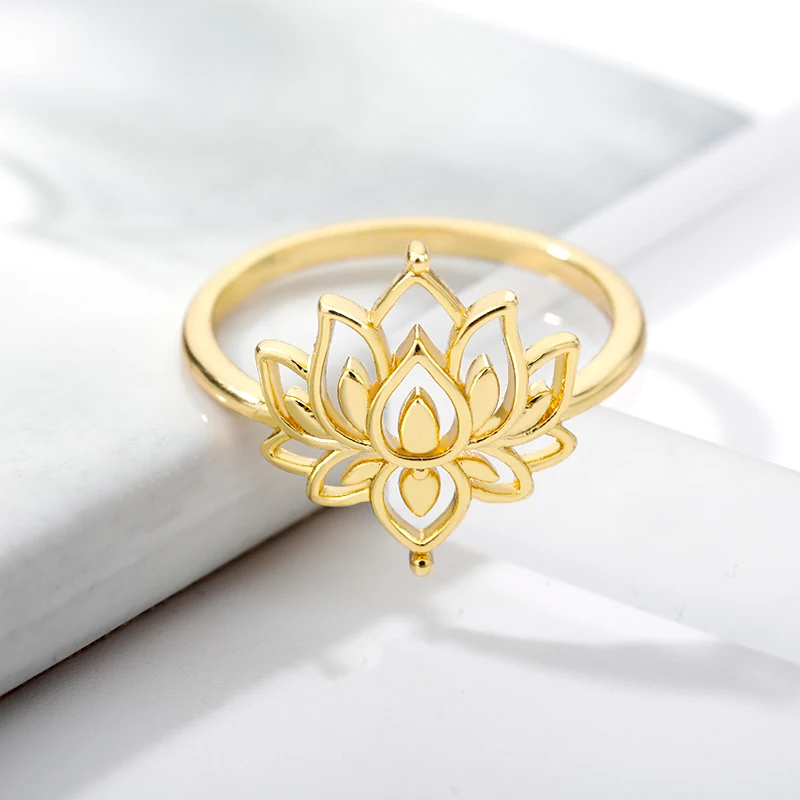 Женское Винтажное кольцо в стиле бохо, обручальные кольца из нержавеющей стали с вырезами и цветком лотоса, бижутерия в стиле бохо