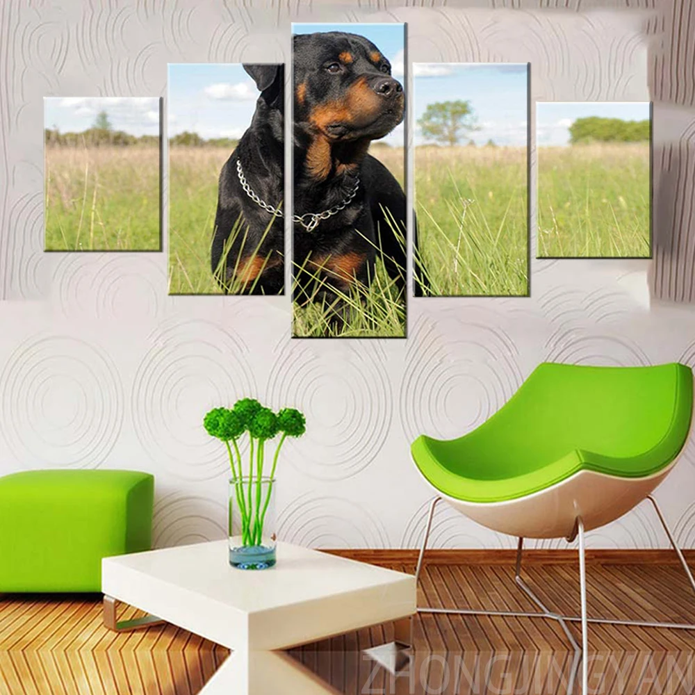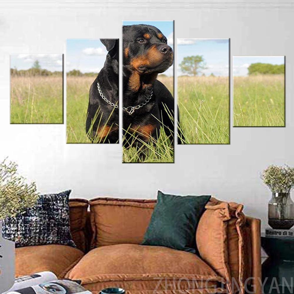 Настенные художественные картины Hd печать 5 шт. Ротвейлер собака животные современные постеры Картина на холсте гостиная домашний Декор Размер рамка
