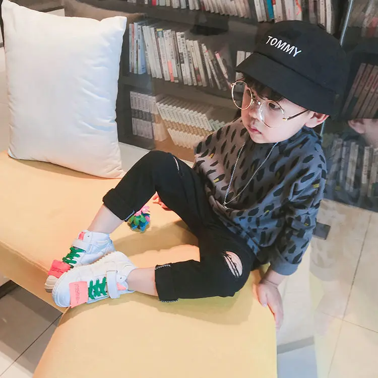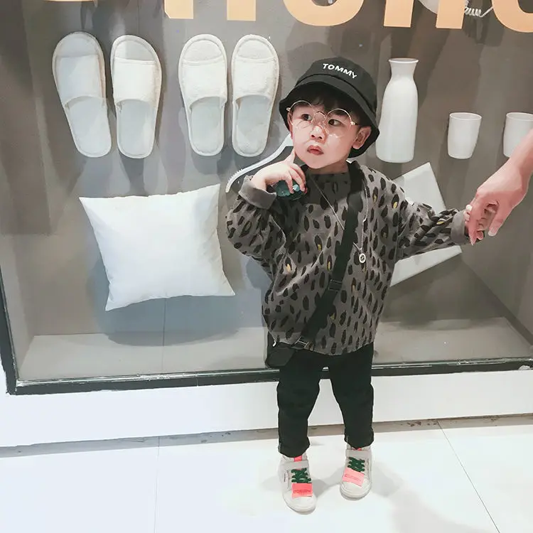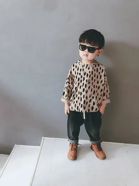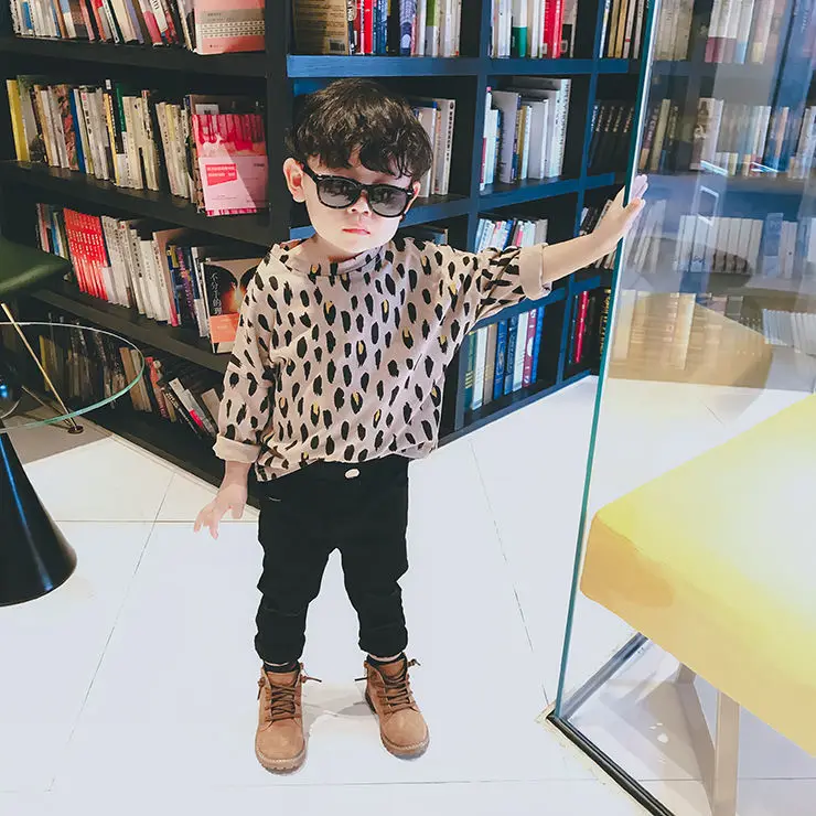 Футболка хлопковая с леопардовым принтом и длинными рукавами для мальчиков, весна-осень, P4 071