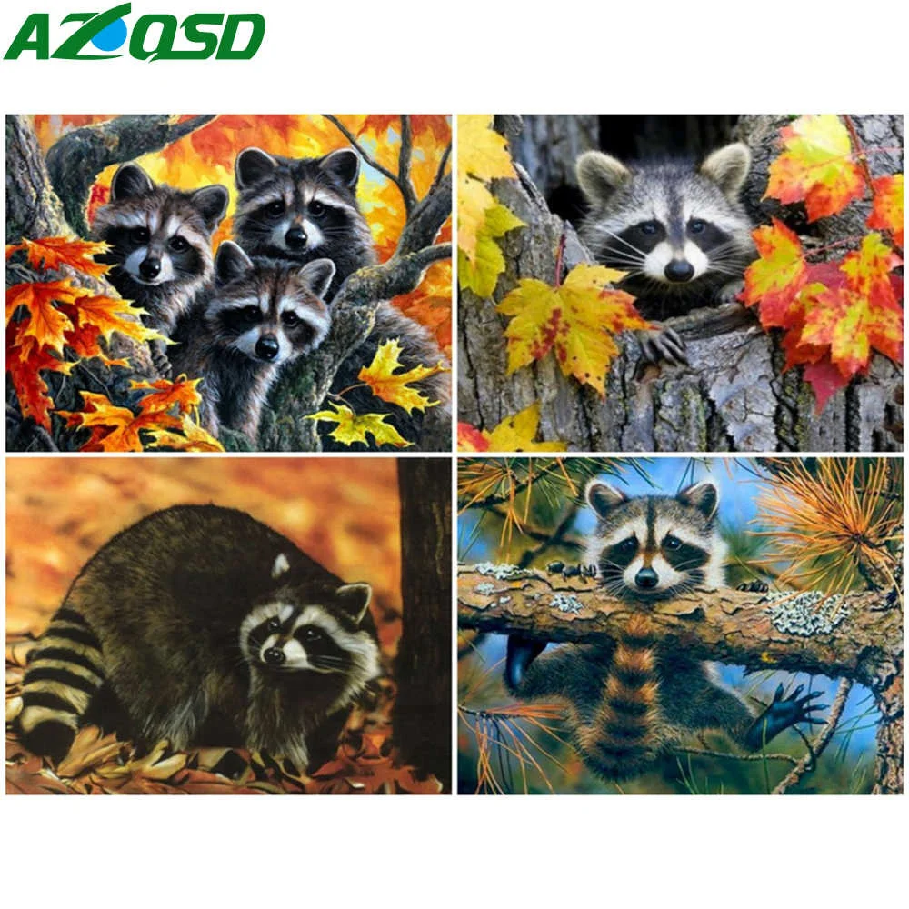 Набор для рисования по номерам на холсте, с рисунком енота