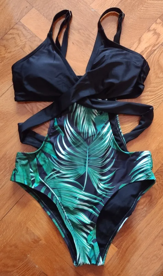 Красивая, стильная модель и тропический принт и делают этот купальник таким эффектным. Ленты можно завязывать по разному, варианты есть. В зоне груди небольшой push-up, при желании его можно выбрать. Я выбрала белый оттенок S размера. На мои параметры ( грудь 84 см, талия 62 см, бёдра 90см. и рост 164 см. ) купальник сел отлично. Обычно я и ношу европейский S размер. Изготовлен из стандартной купальной ткани, она плотная и не просвечивает. Пошив качественный, фабричный, претензий нет. Смотри подробнее в inst @Jelena_shoping