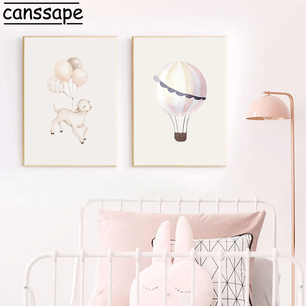 Картина на стену для детской, плакат с кроликом из ягненка, картина с изображением животных, печатать воздушный шар холст, постеры на стену в скандинавском стиле для украшения детской комнаты