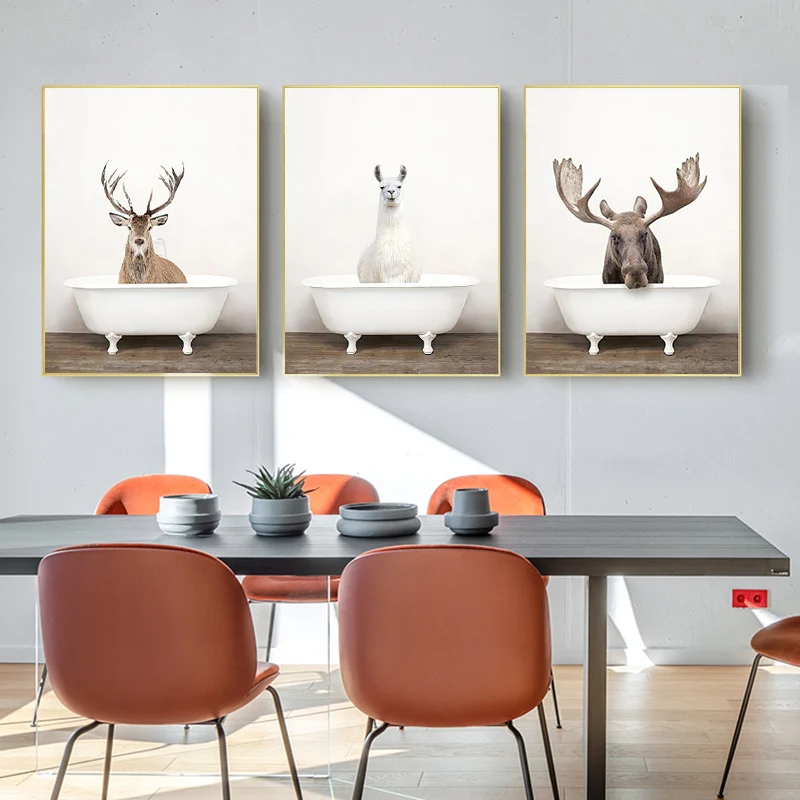 Скандинавский плакат с милыми животными для купания, принты на холсте, Скандинавская живопись, минималистичный настенный художественный принт для детской комнаты, ванной комнаты
