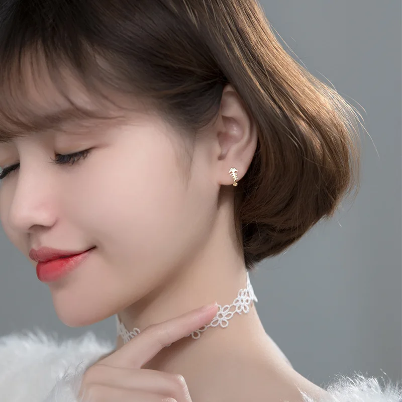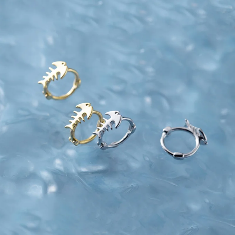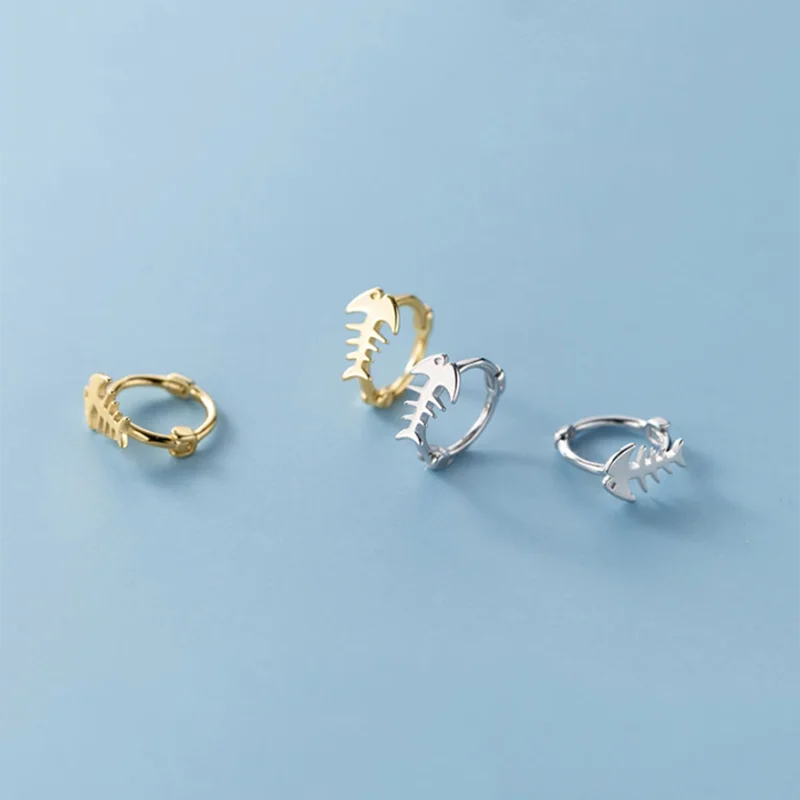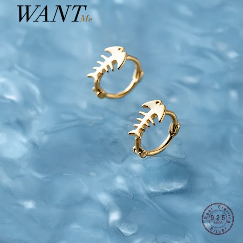 Женские серьги-кольца WANTME, из серебра 925 пробы, с рыбьей костью