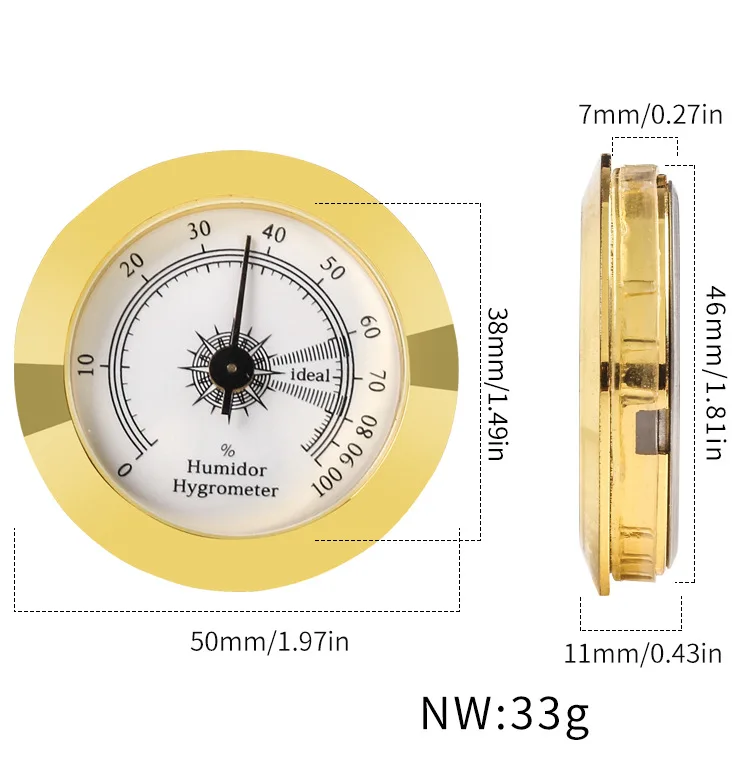 50 мм Мини сигарный гигрометр Высокоточный бытовой инкрустированные механические и гигрометром декоративные часы для коробка для сигар, музыкальный ящик, гитары, детская комната