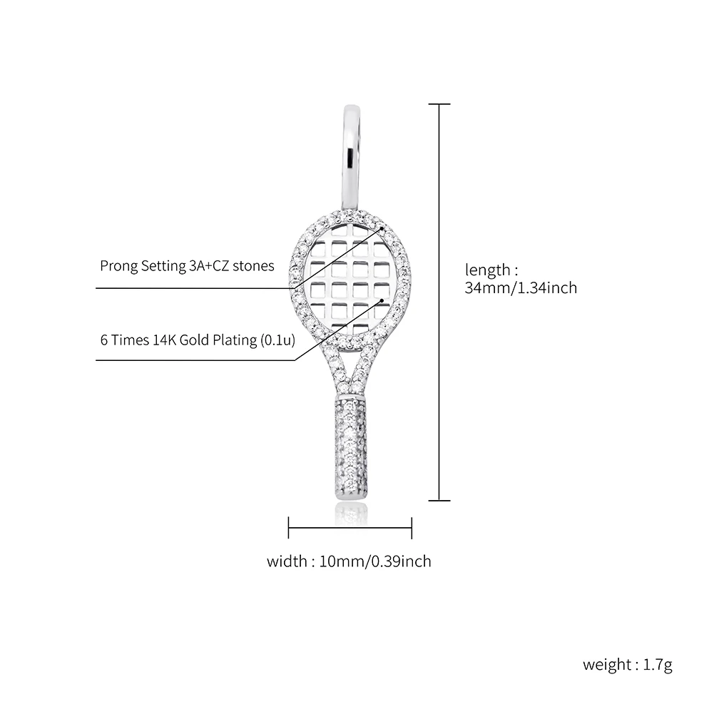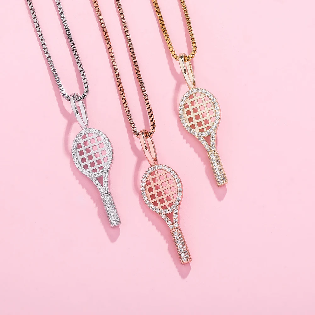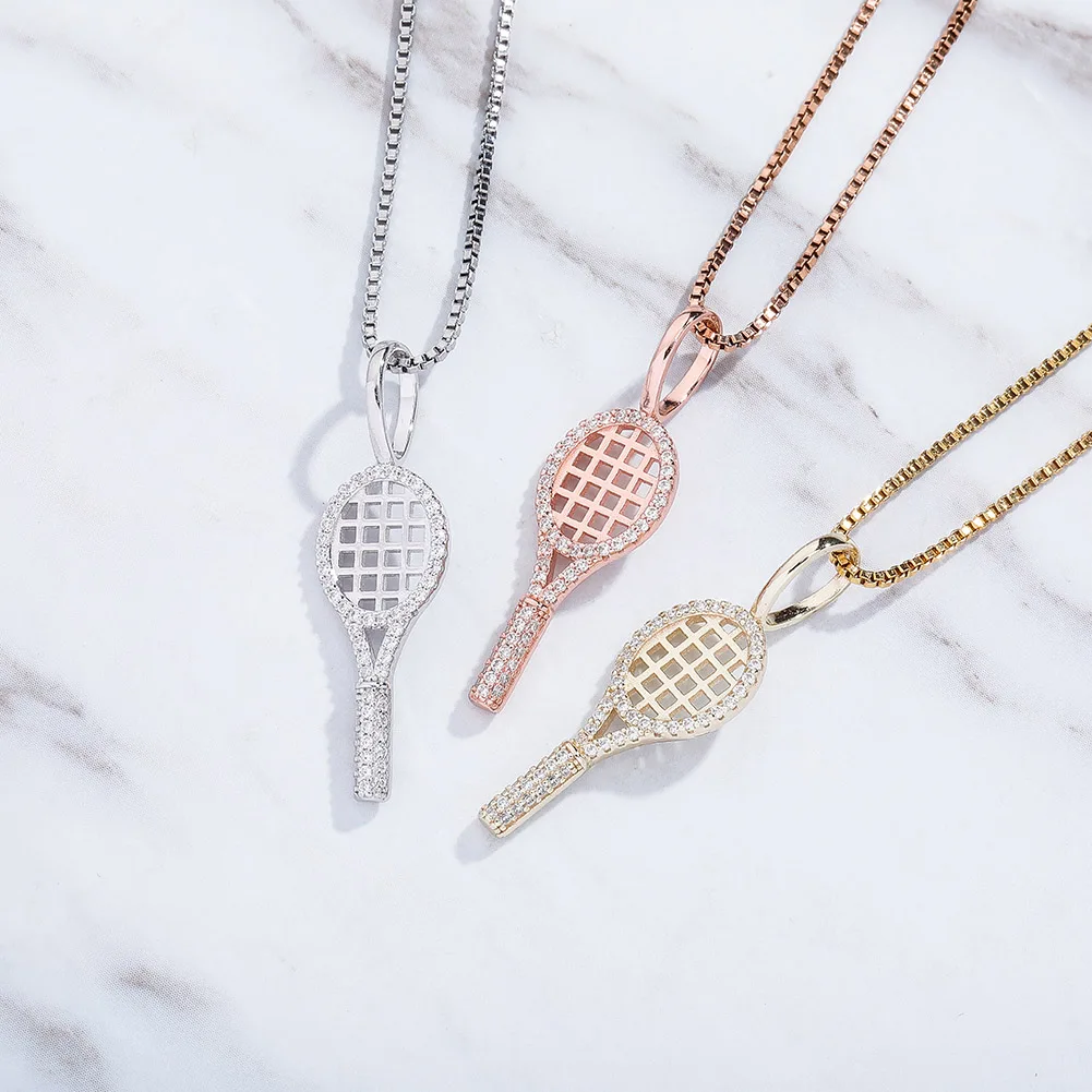 Ожерелье из серебра 925 пробы с кулоном в виде ракетки для тенниса