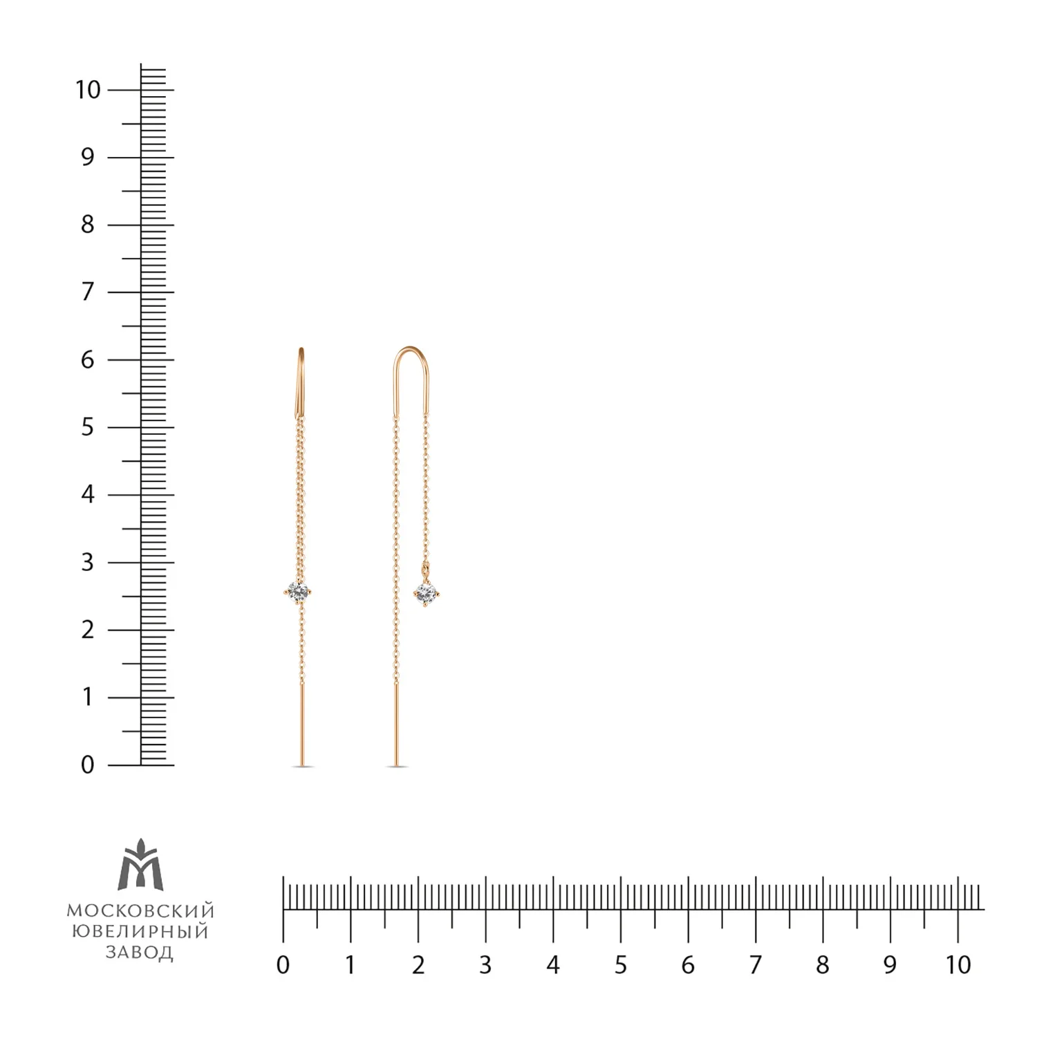 Золотые серьги c фианитом, 585 пробы, MIUZ Diamonds (Московский ювелирный завод)