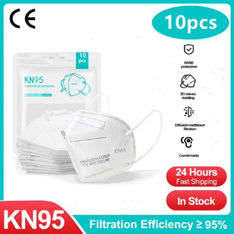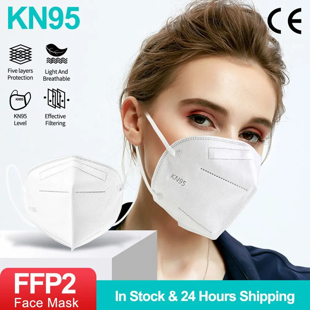 10-100 шт. KN95 маска для лица из 5 слоев фильтр уход за кожей лица маска фильтрации рот маски пыленепроницаемый респиратор многоразовая маска защитные CE маски