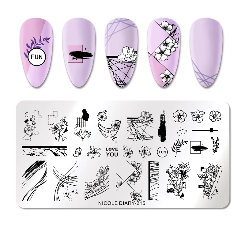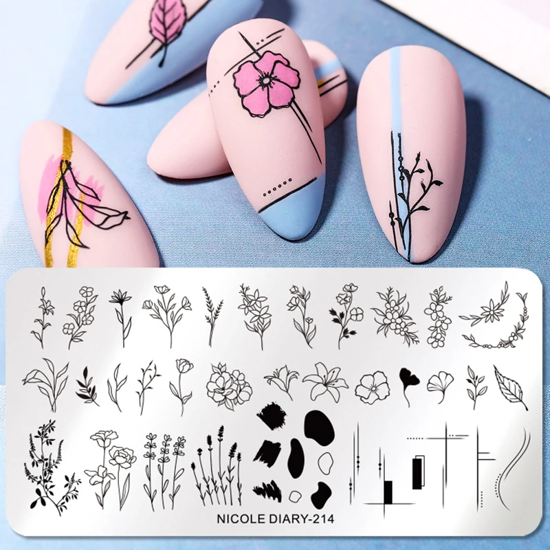 Трафареты для стемпинга ногтей с геометрическими линиями и весенними цветами, инструменты для изображений