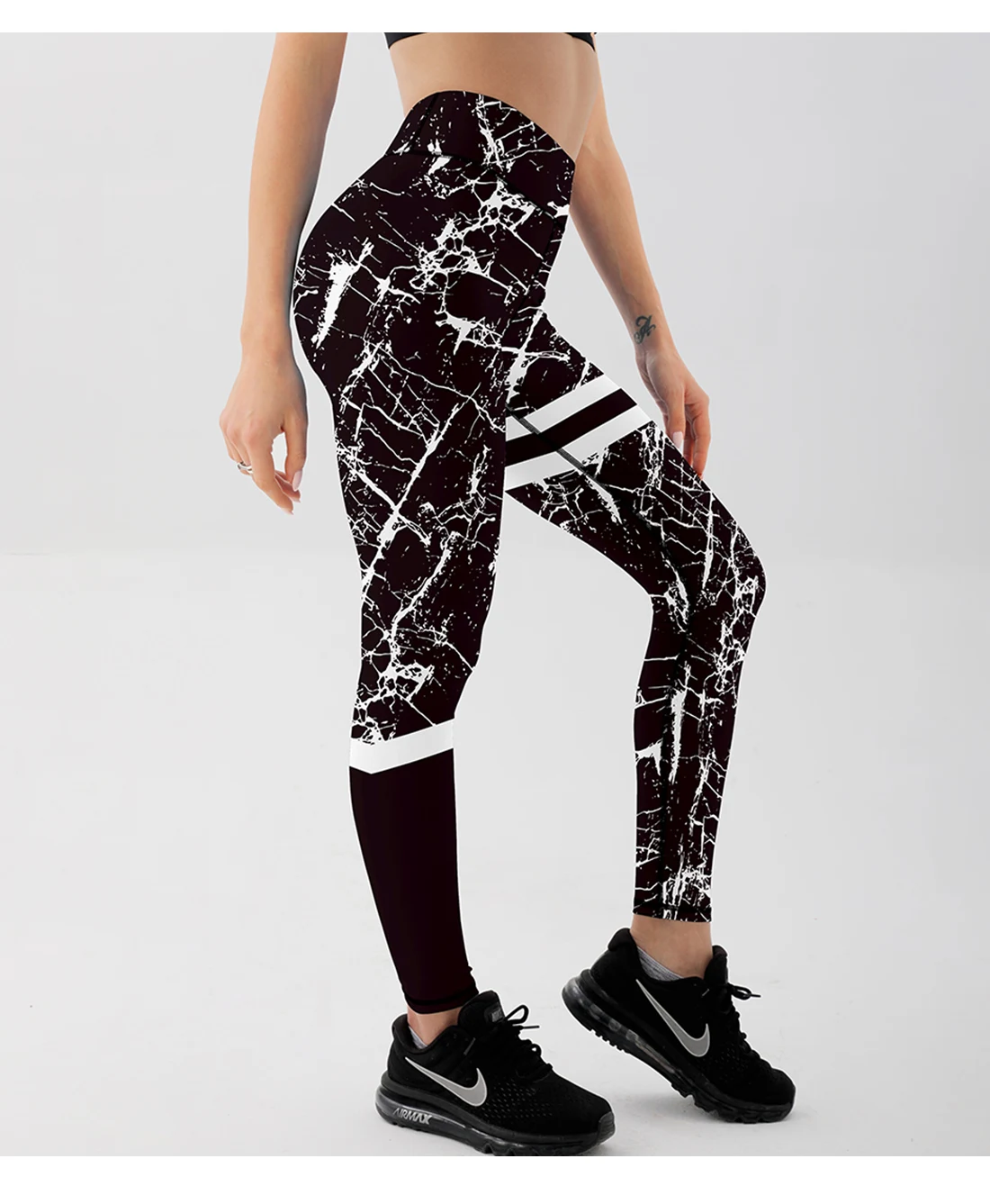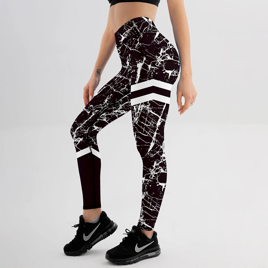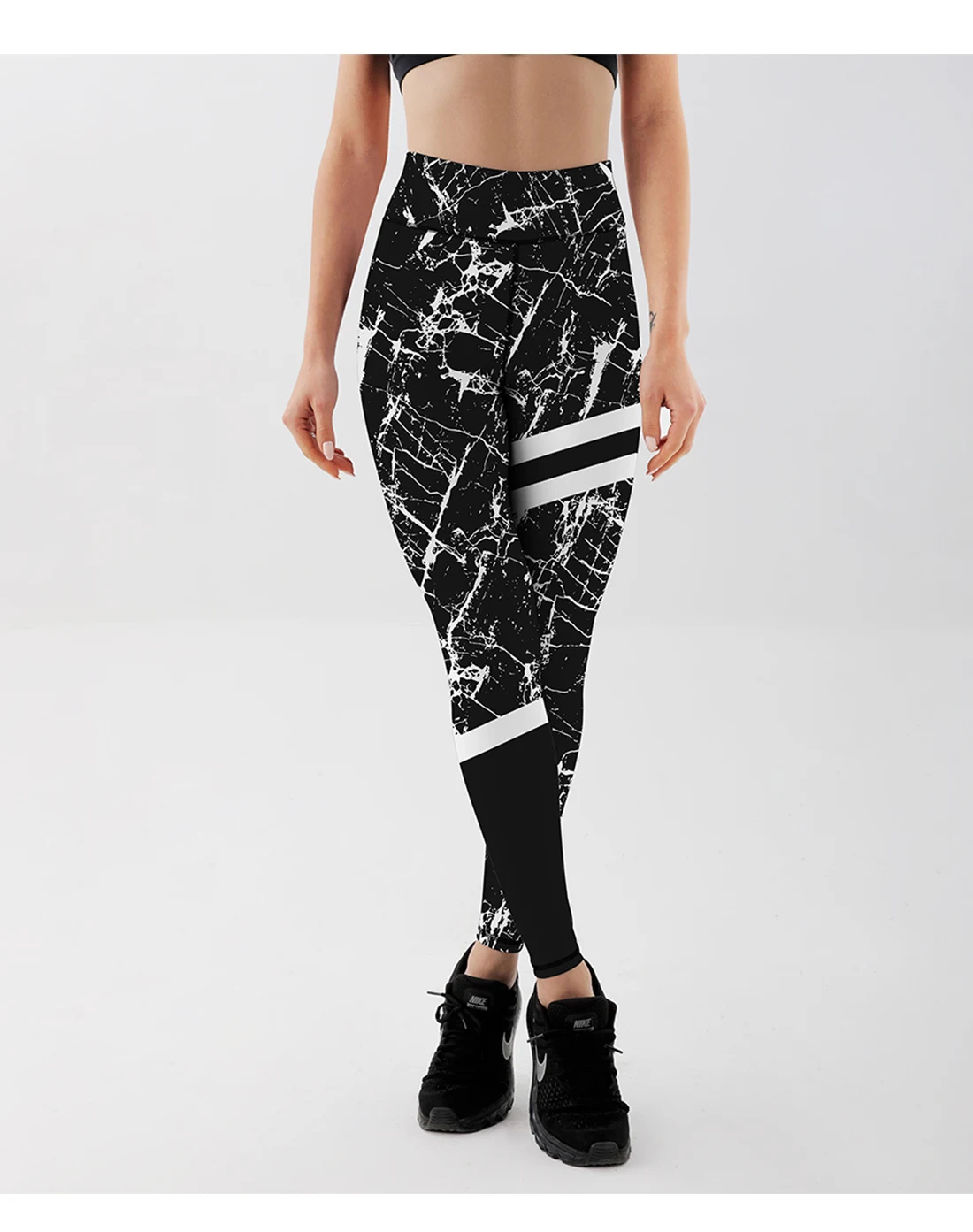 Ins стили полосатые леггинсы с принтом Модные женские леггинсы облегающие Стрейчевые брюки черные и белые текстурные брюки