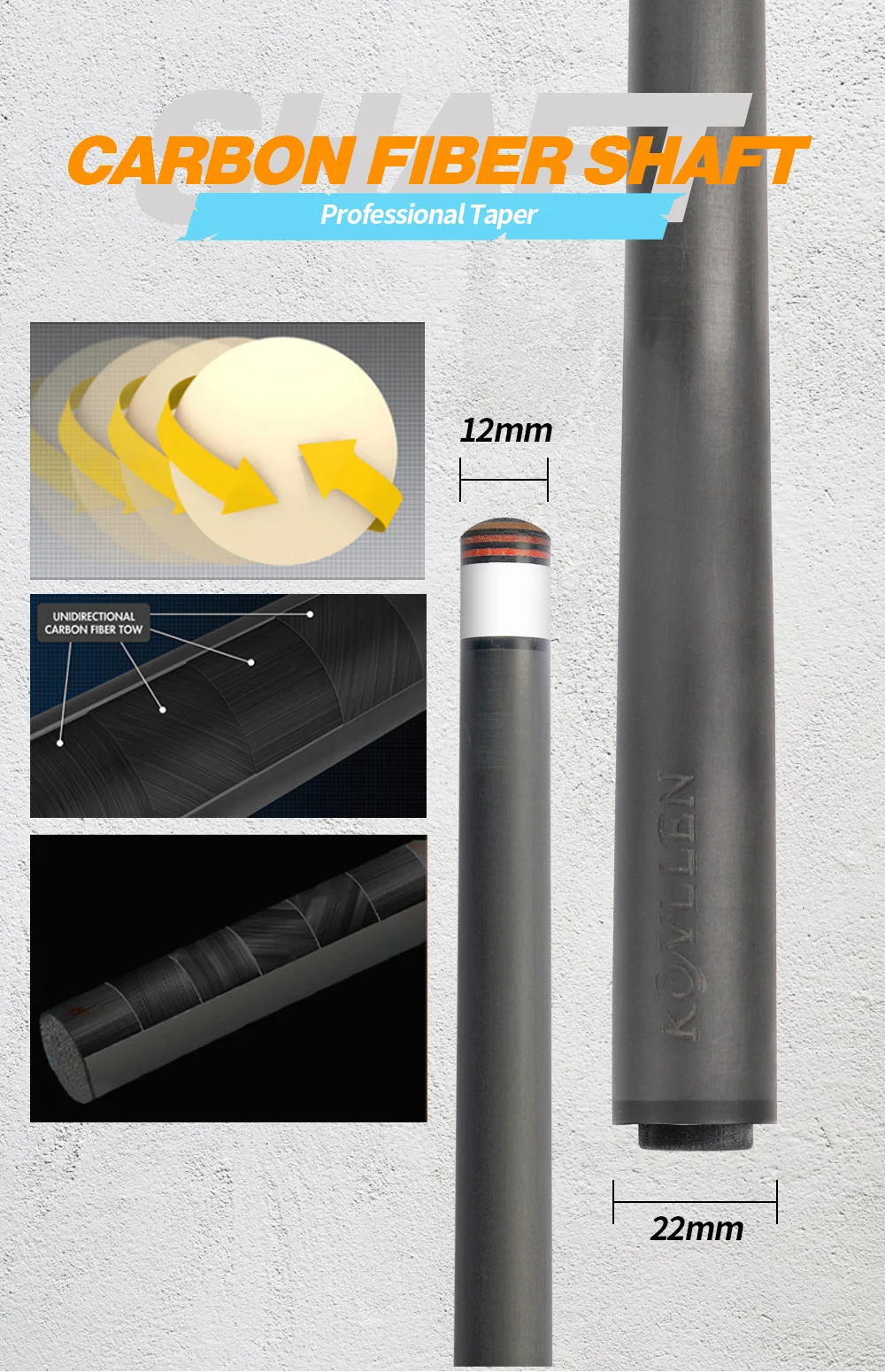 1. Вал из углеродного волокна, более жесткий, чем закаленное стекло, более мощный 2. Черный технологический вал использует аэрокосмический чистый композитный материал из углеродного волокна, внешний вид из углеродного черного, полая структура делает вал легче, но углеродное волокно может быть более мощным, чем твердое дерево cue 3,3/8*8 радиальный контактный шарнир, более плотное соединение 4. Новые цвета лидируют в моде