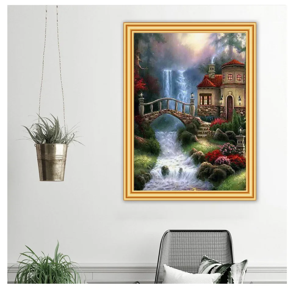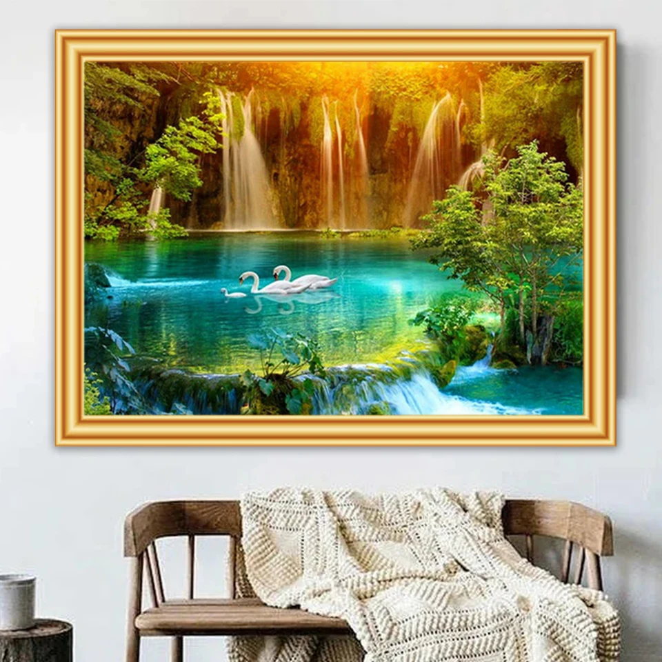 Алмазная 5D картина сделай сам, картина с пейзажные наборы водопадом, мозаика для вышивки квадратными стразами, картина стразы, украшение для дома