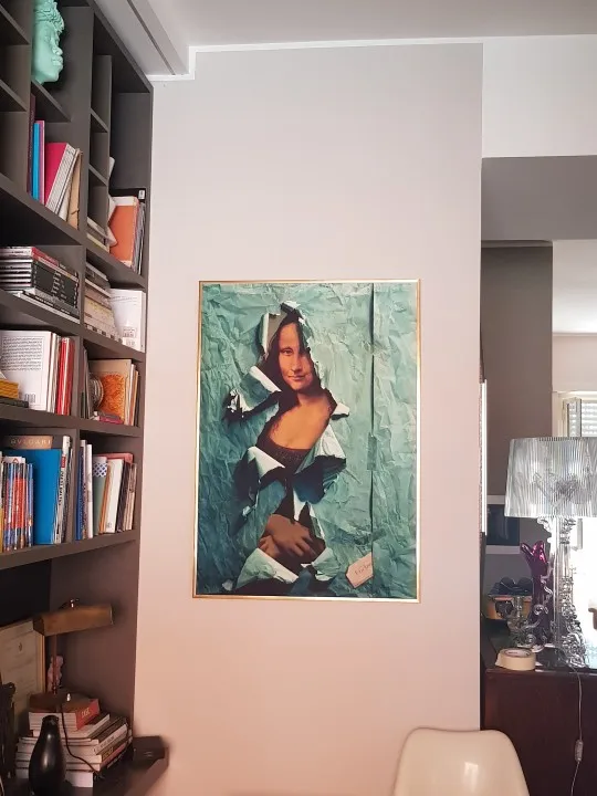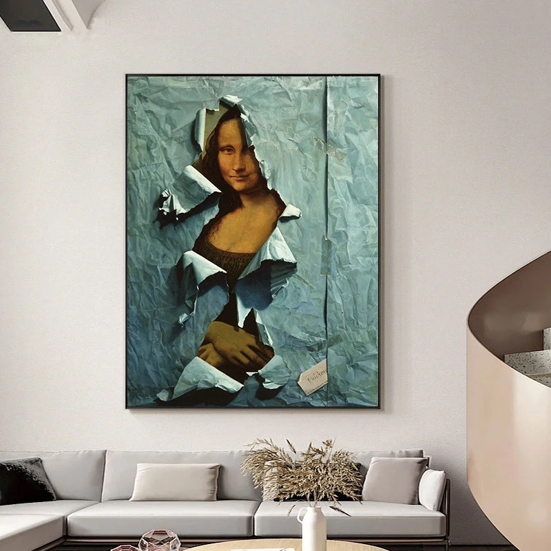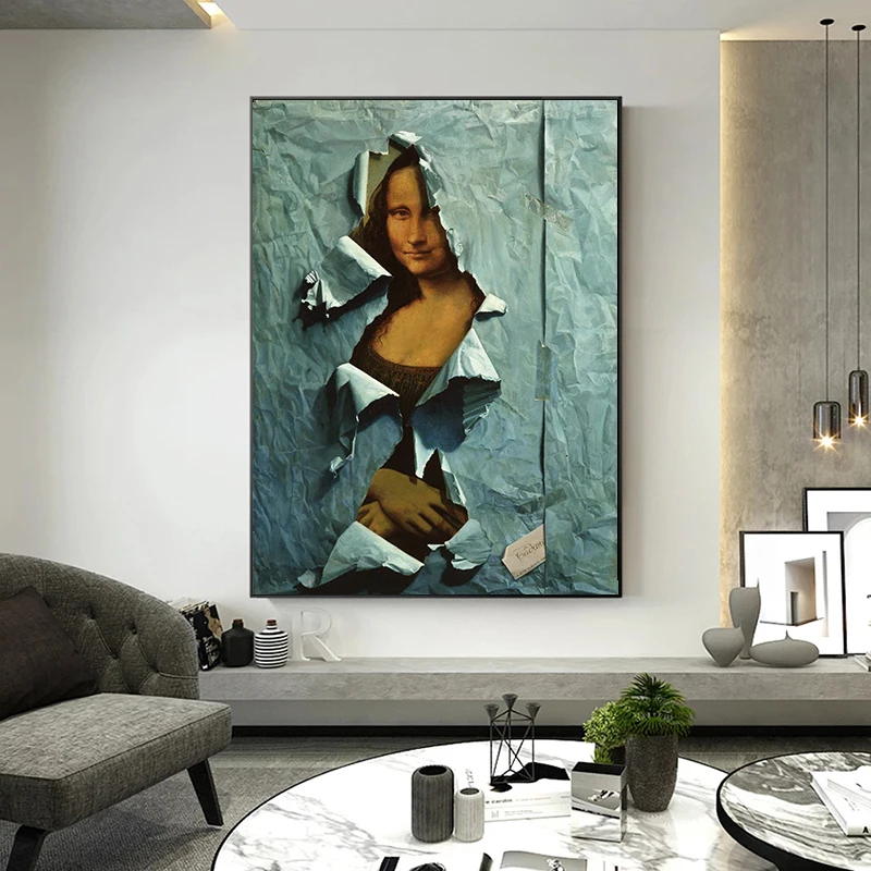 Картина на холсте "пародия знаменитой Моны Лизы", покрытая плакатом из синей бумаги, настенные художественные картины для гостиной, домашний декор стен