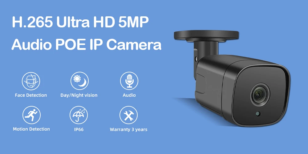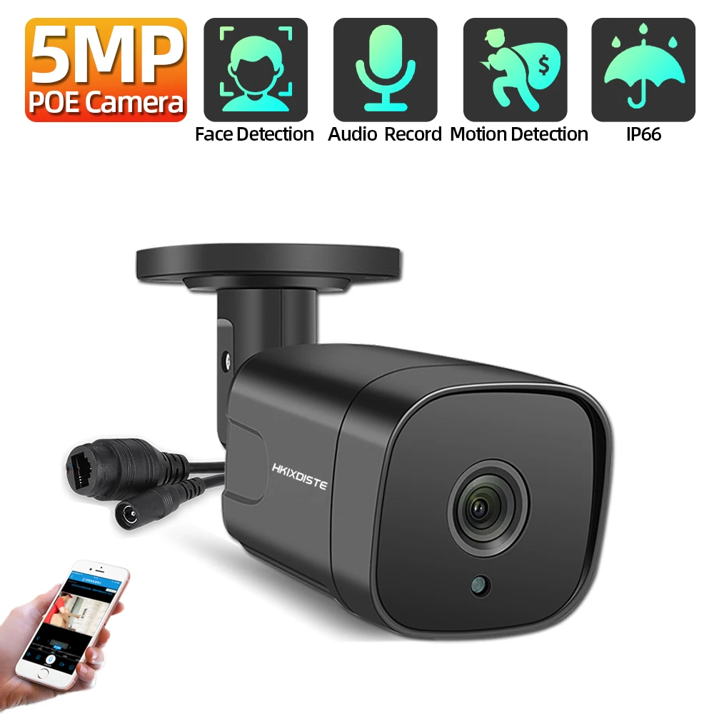 H.265 POE IP 5 Мп камера, внешняя цилиндрическая комната, уличное Аудио 48 В, обнаружение движения и воспроизведение лица, POE камера, электронная почта, будильник