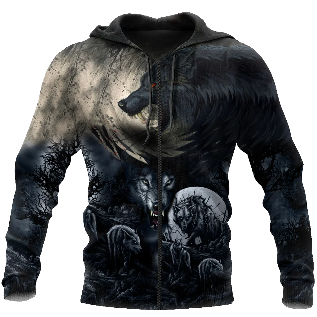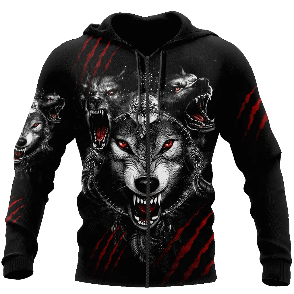 Толстовка унисекс на молнии, с 3D-принтом волк