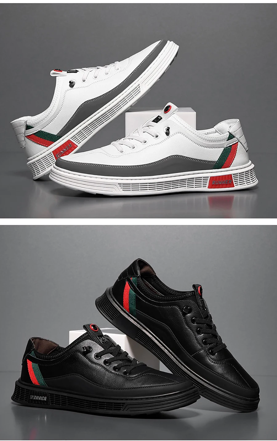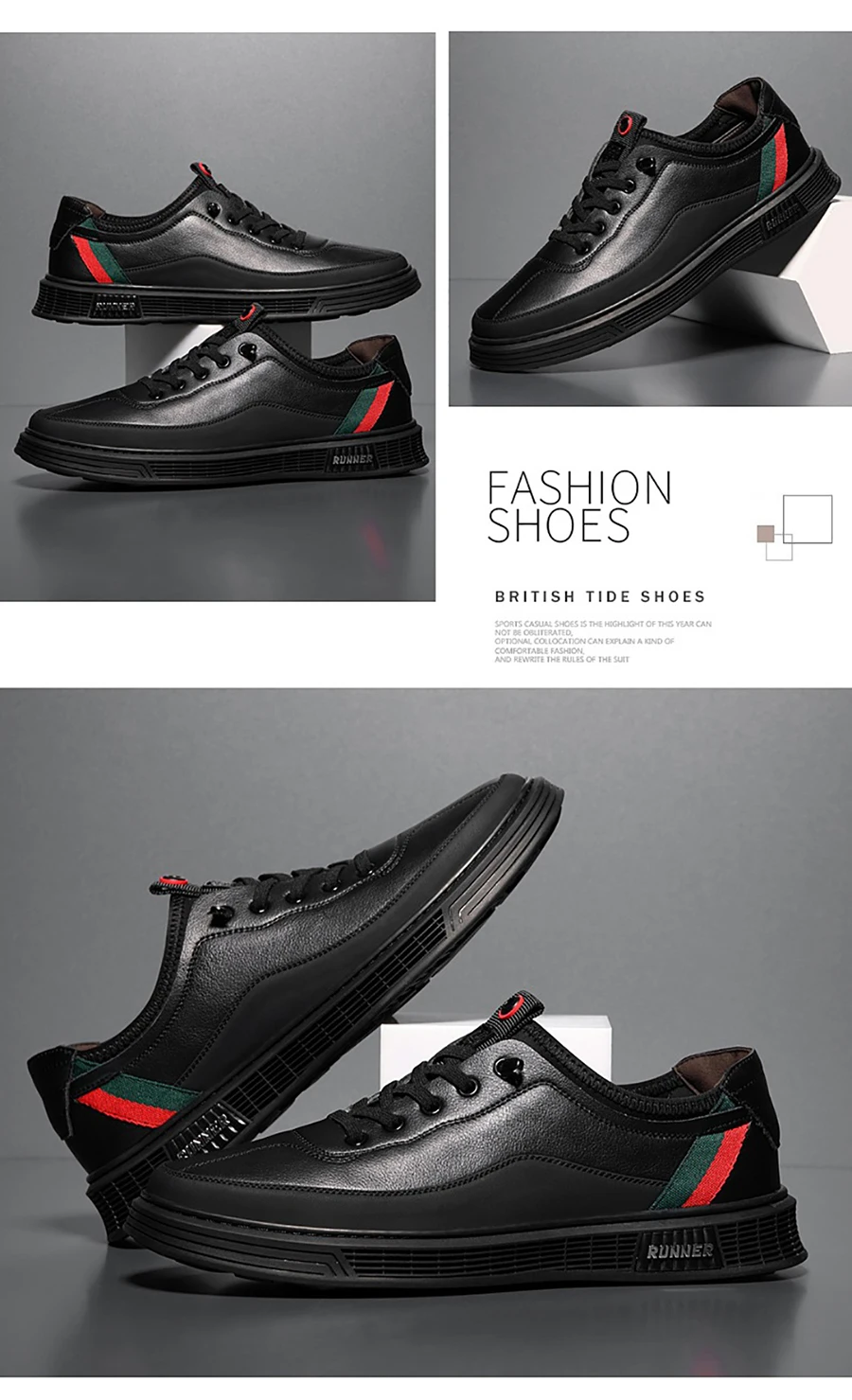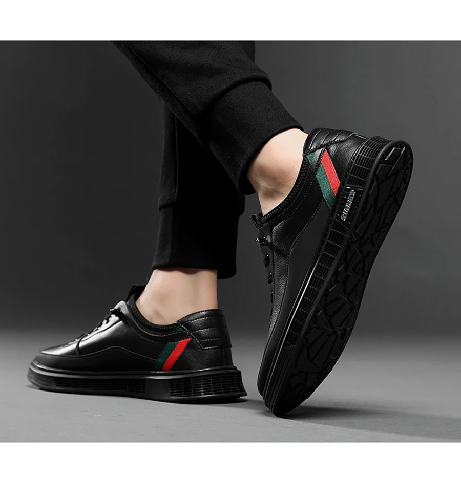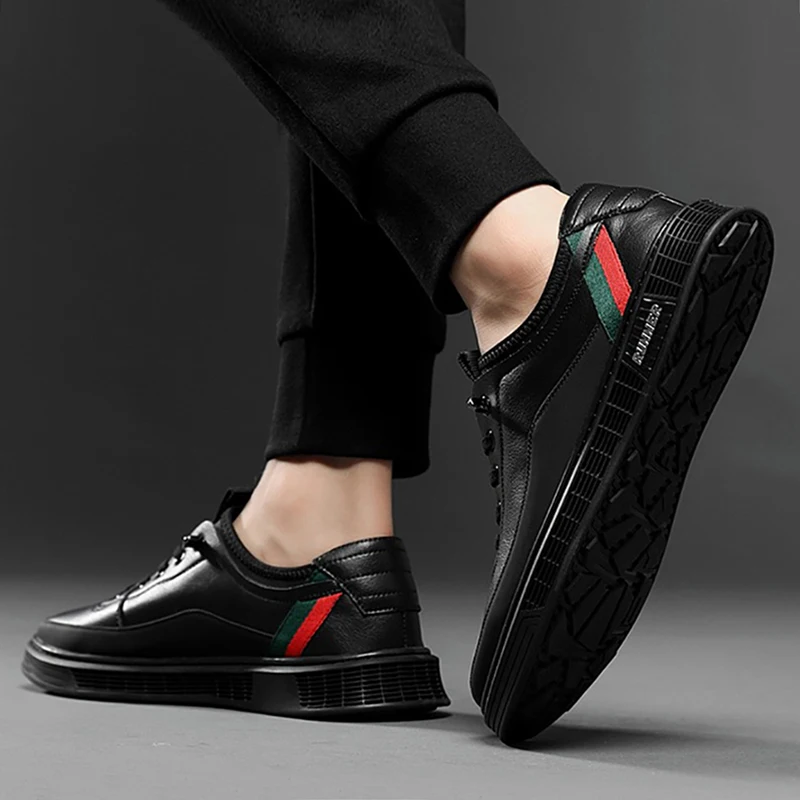 Кроссовки мужские кожаные, дышащие водонепроницаемые, повседневная обувь на платформе, плоская подошва, для взрослых, черные
