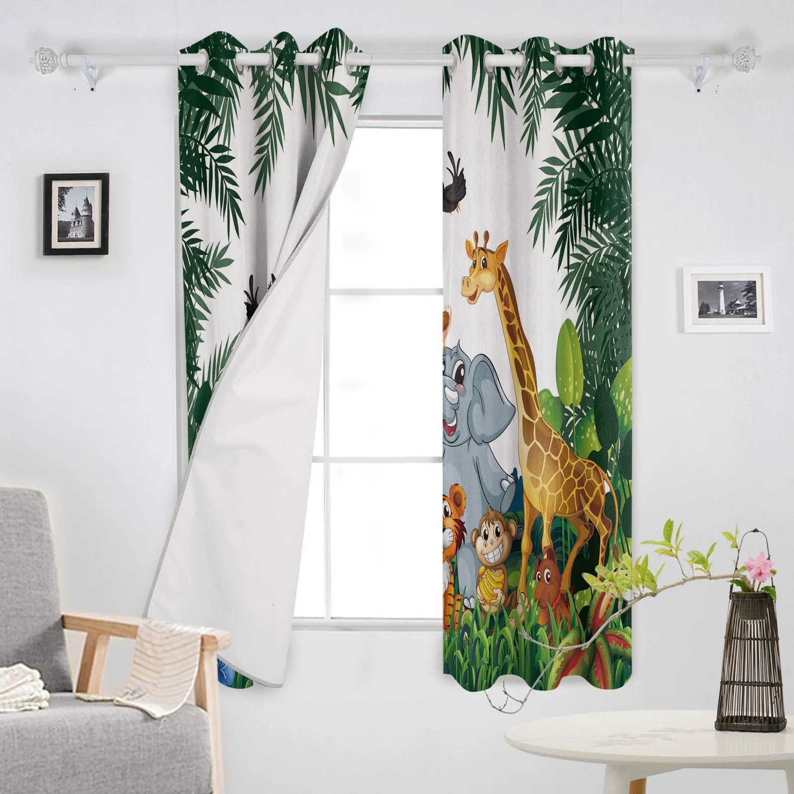 Шторы на окна с мультипликационным изображением леса жирафа, детские, домашний декор, занавески для гостиной, кухни, занавески, занавески для спальни