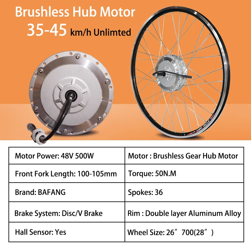 Комплект для переоборудования переднего колеса велосипеда BAFANG, 48 В, 500 Вт, бесщеточный привод ступицы шестерни, 26 дюймов, 27,5 700C 48 В, комплект для электрического велосипеда