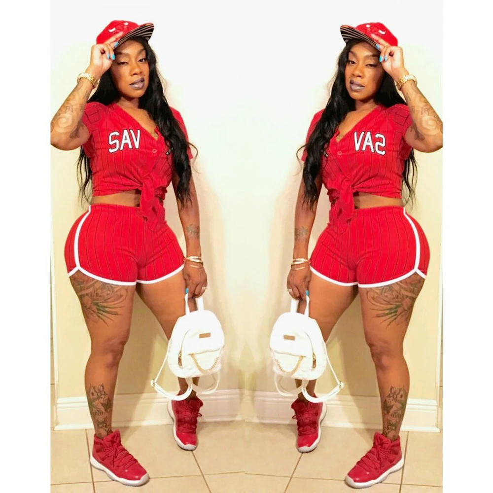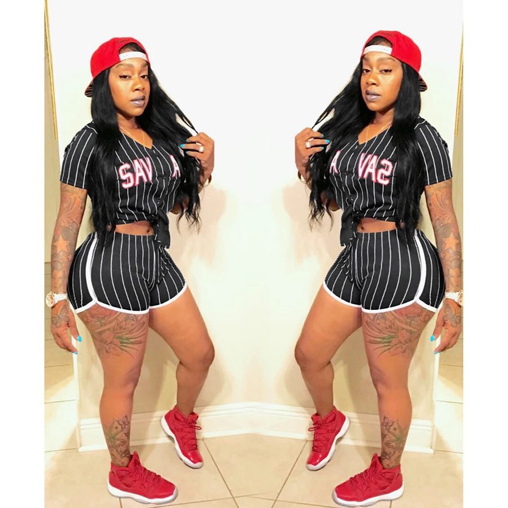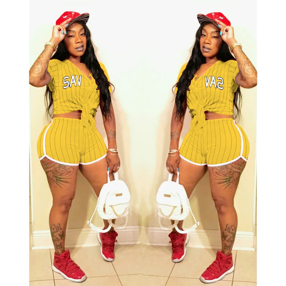 Комплект из двух предметов Cutubly с коротким рукавом, сексуальные повседневные комплекты из двух предметов для женщин, на шнуровке, в полоску, с буквенным принтом, комплект из двух предметов, новинка 2021