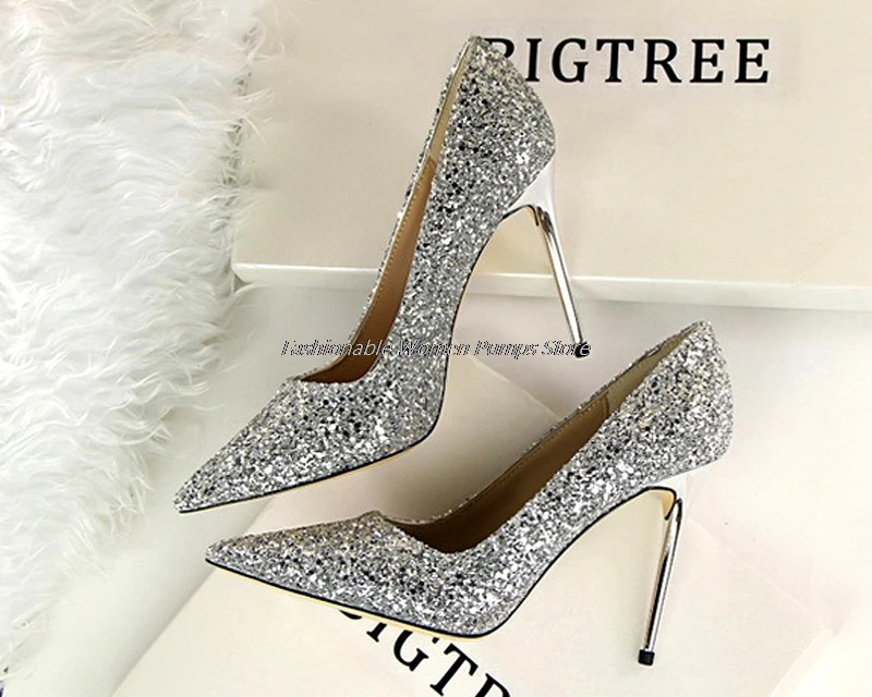 Туфли-лодочки женские на высоком каблуке, пикантные блестящие, заостренный носок, туфли-лодочки, праздничная обувь, туфли-лодочки на шпильке с блестками