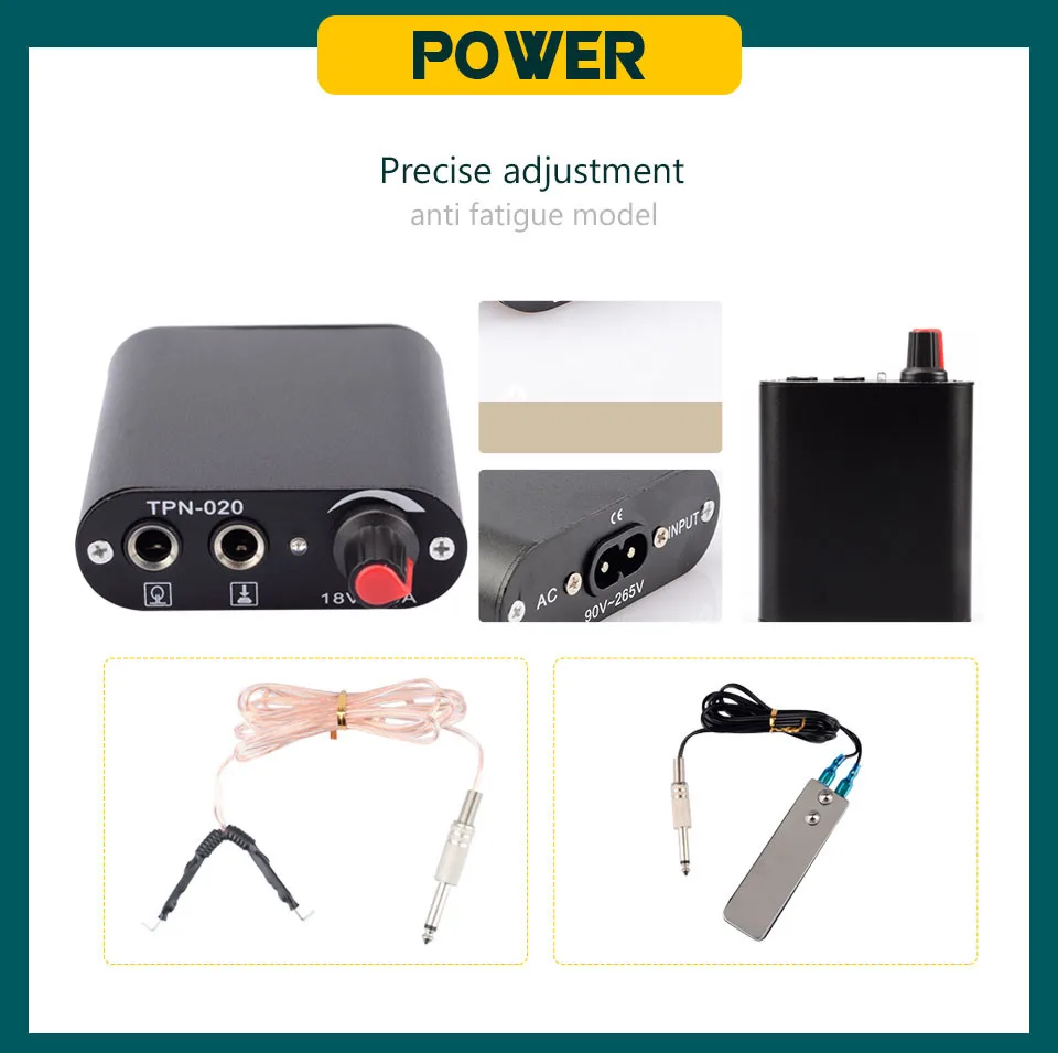 Набор тату-машинок Профессиональный с блоком питания и иглами, подходят для начинающих, с чернилами