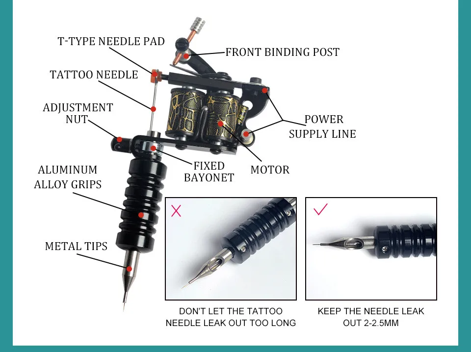 5. Используйте резиновый ремешок, пересекающий татуировочный пистолет и иглу, чтобы избежать колебаний иглы