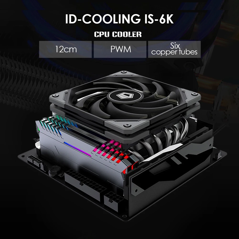 ID-охлаждение IS-6K 12 см тихий вентилятор охлаждения процессора низкопрофильный Тонкий 6 тепловых труб радиатор 4 PinШИМРадиатор
