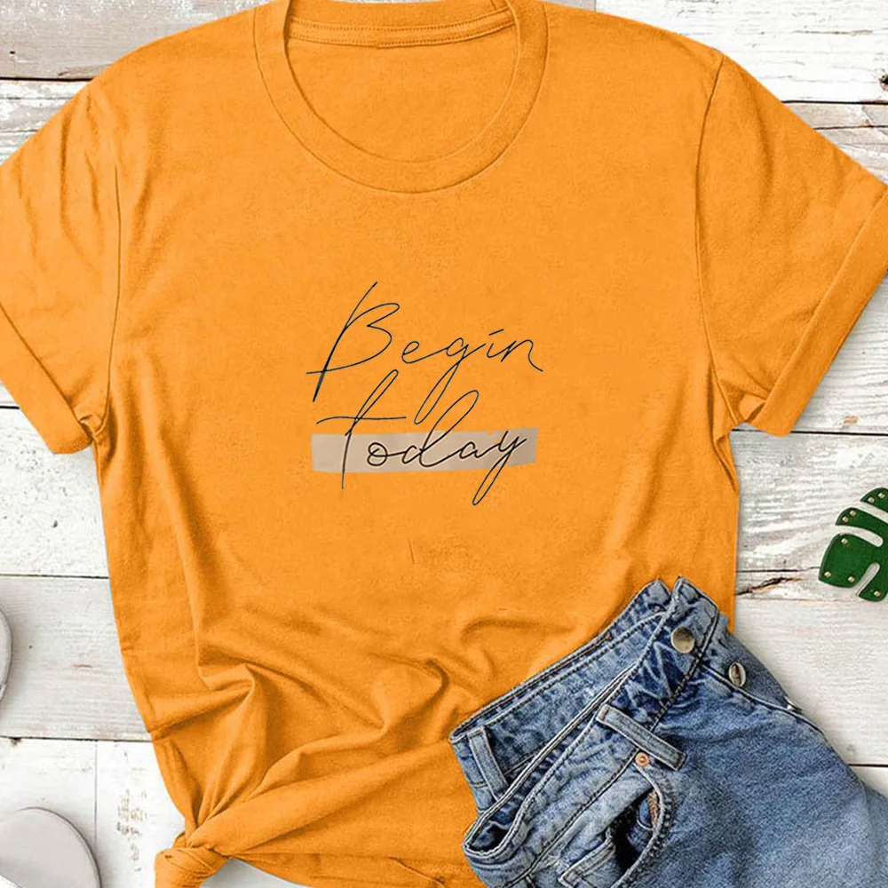 Женская хлопковая футболка с коротким рукавом, круглым вырезом и принтом