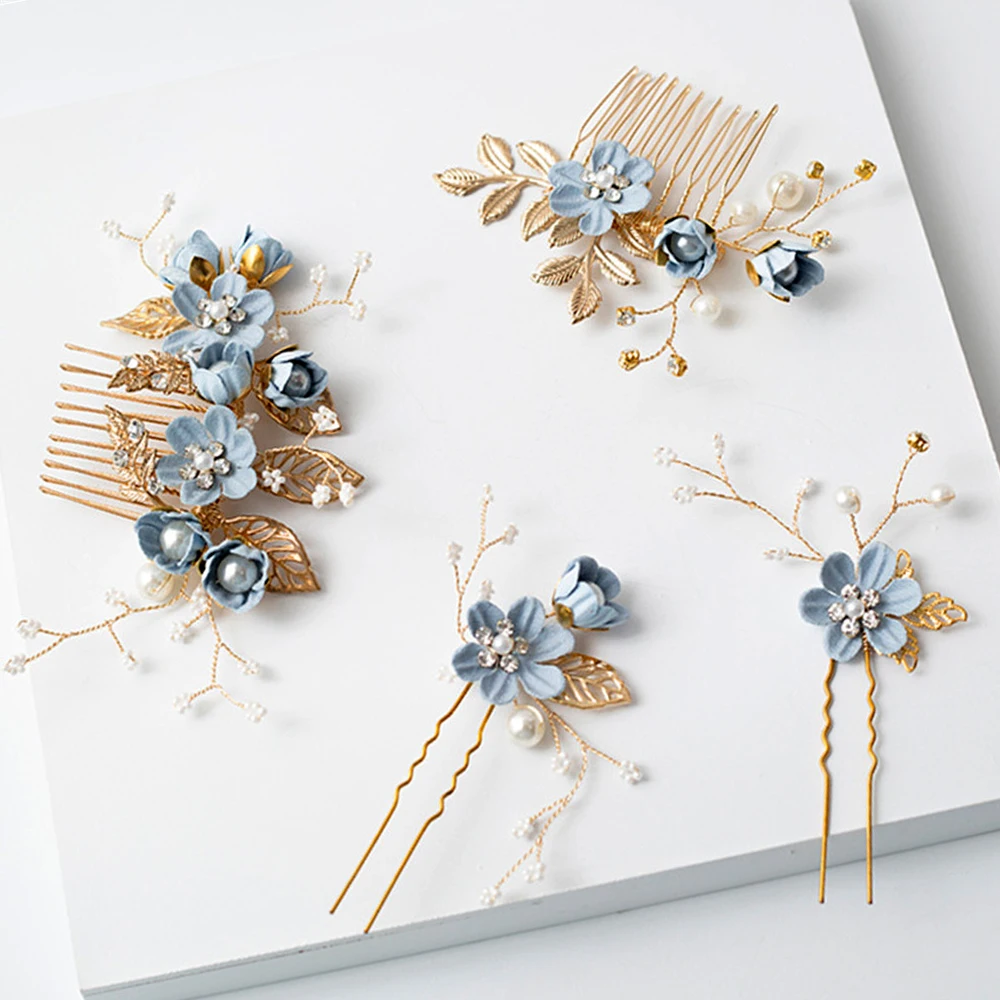 1 шт. роскошный синий розовый цветок расчески для волос головной убор для выпускного вечера корона для невесты аксессуары для волос Золотые листья Свадебные украшения для волос Шпильки