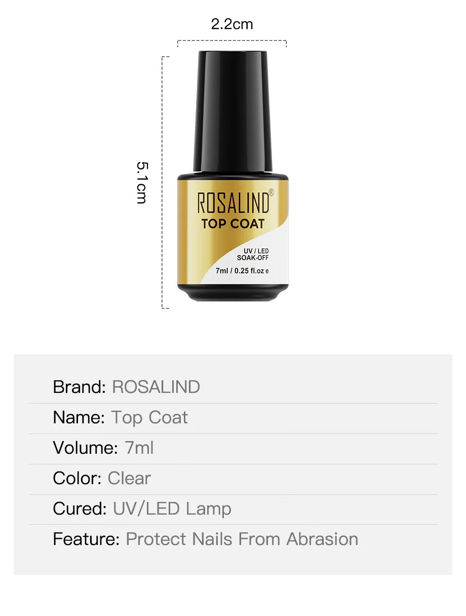 Гель-лак ROSALIND 7 мл, Базовое покрытие, УФ/Светодиодная лампа, сохраняет ваши ногти яркими и блестящими в течение длительного времени