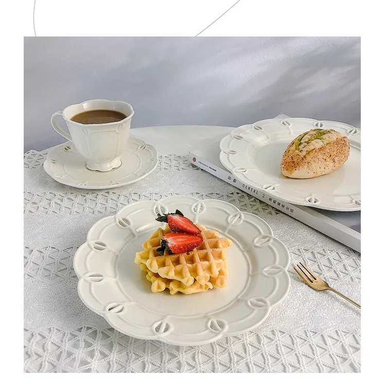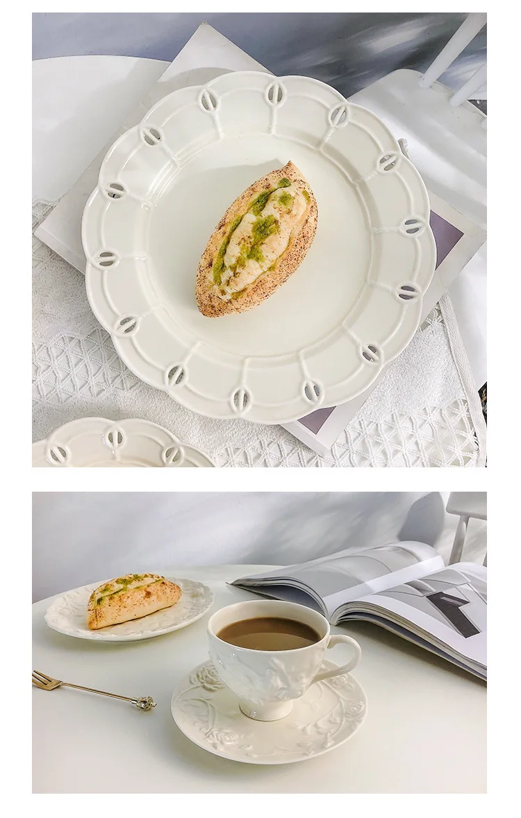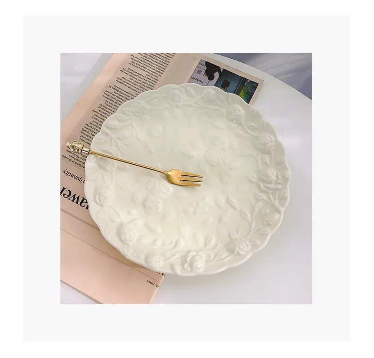 Керамические тисненые блюда для торта во французском стиле, Винтажные белые, тарелки для закусок