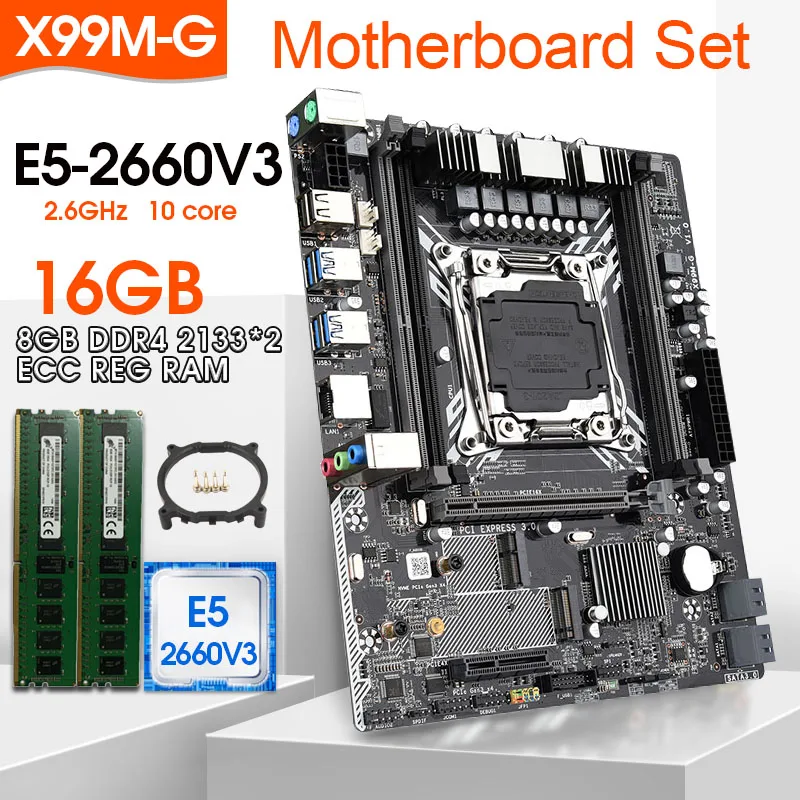 Системная плата JINGSHA, системная плата с Xeon E5 2660 V3 LGA2011-3 ЦП 2 шт. X 8 ГБ = 16 Гб 2133 МГц DDR4, память X99M-G NVME M.2 wifi
