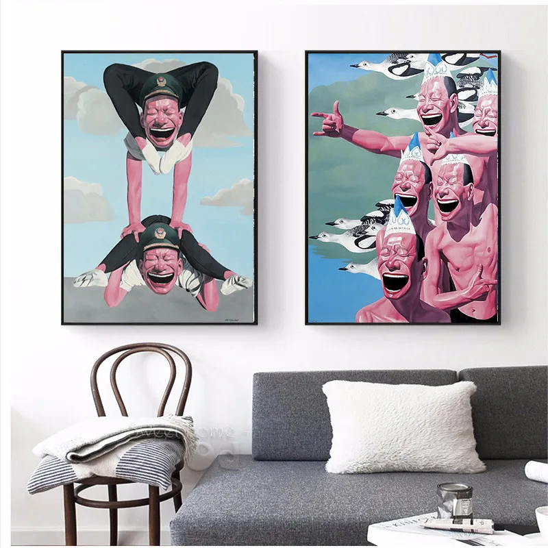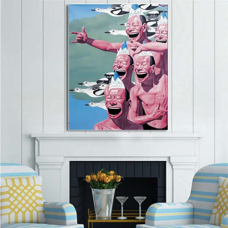 Картина с фигурками Юэ минцзюнь, Смеющийся человек, Картина на холсте художественные плакаты и принты, настенные картины для декора гостиной