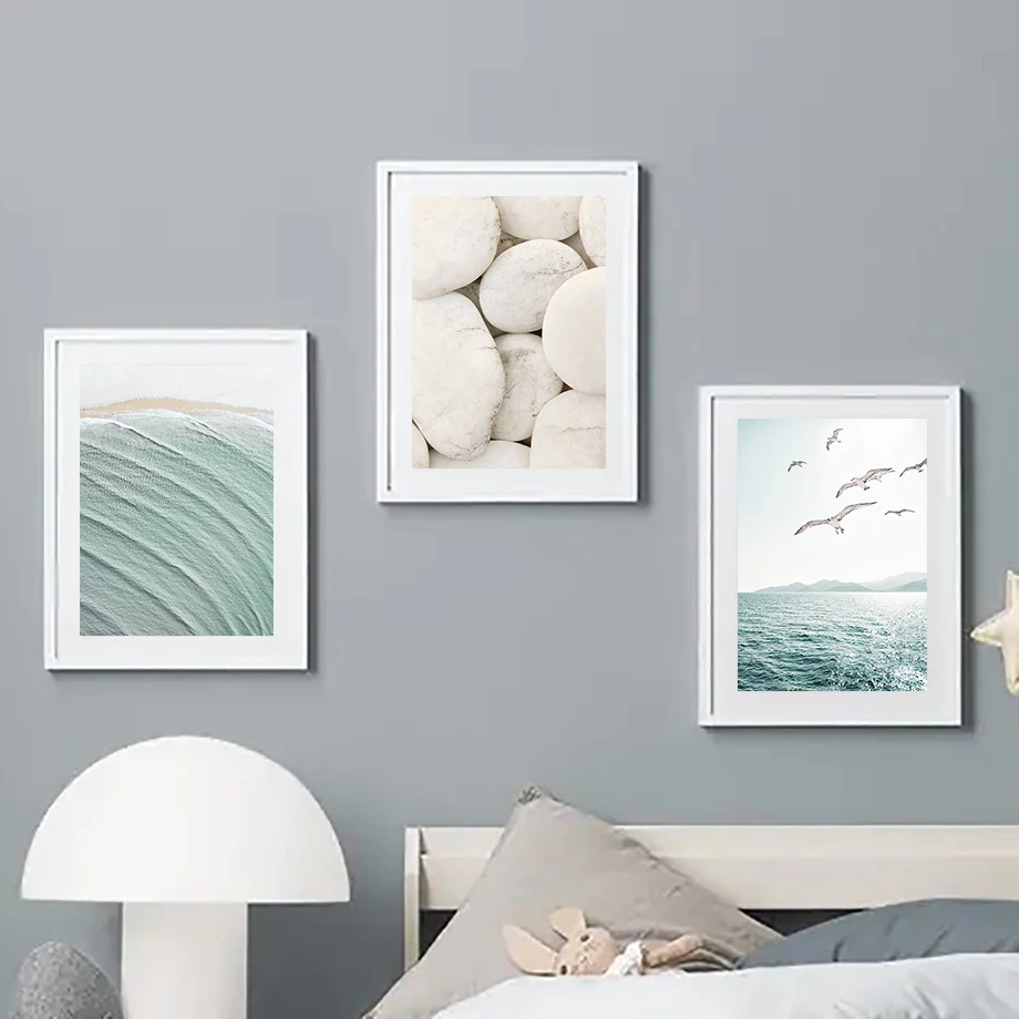 Картина на холсте с изображением белого камня моста тростника синего моря, плакаты и принты для украшения гостиной