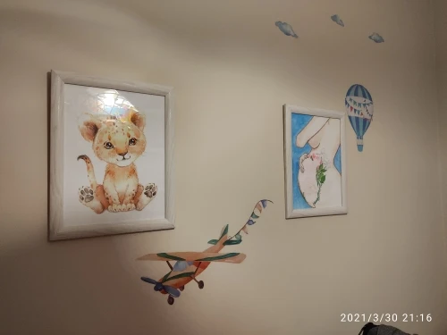 И милые носки с рисунками зверей из мультфильмов, рисунок стены дом...