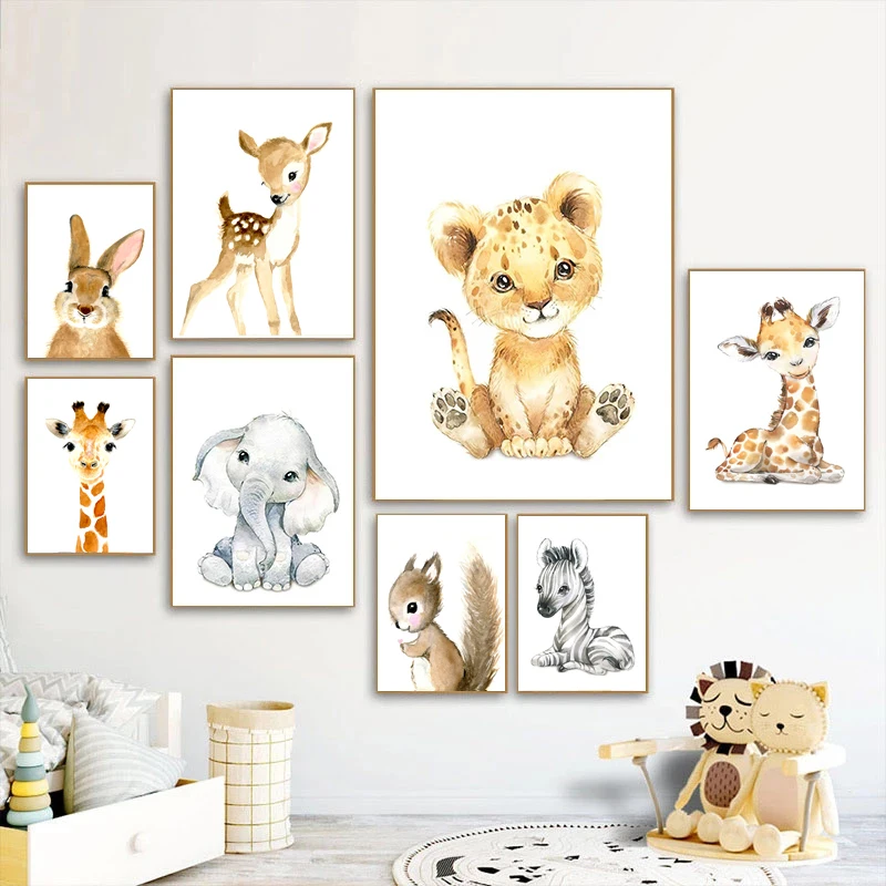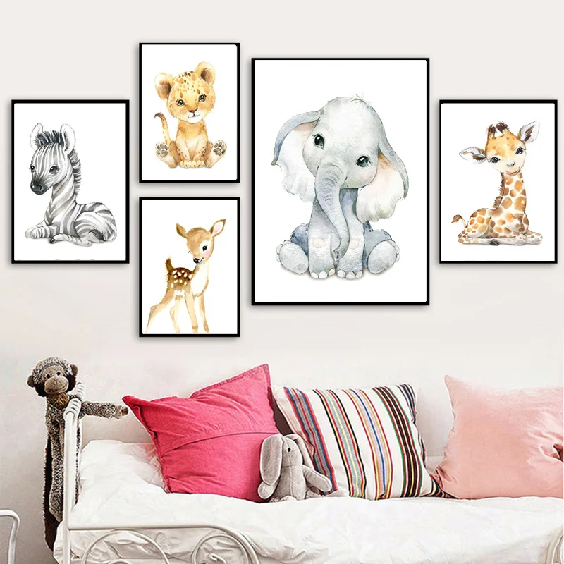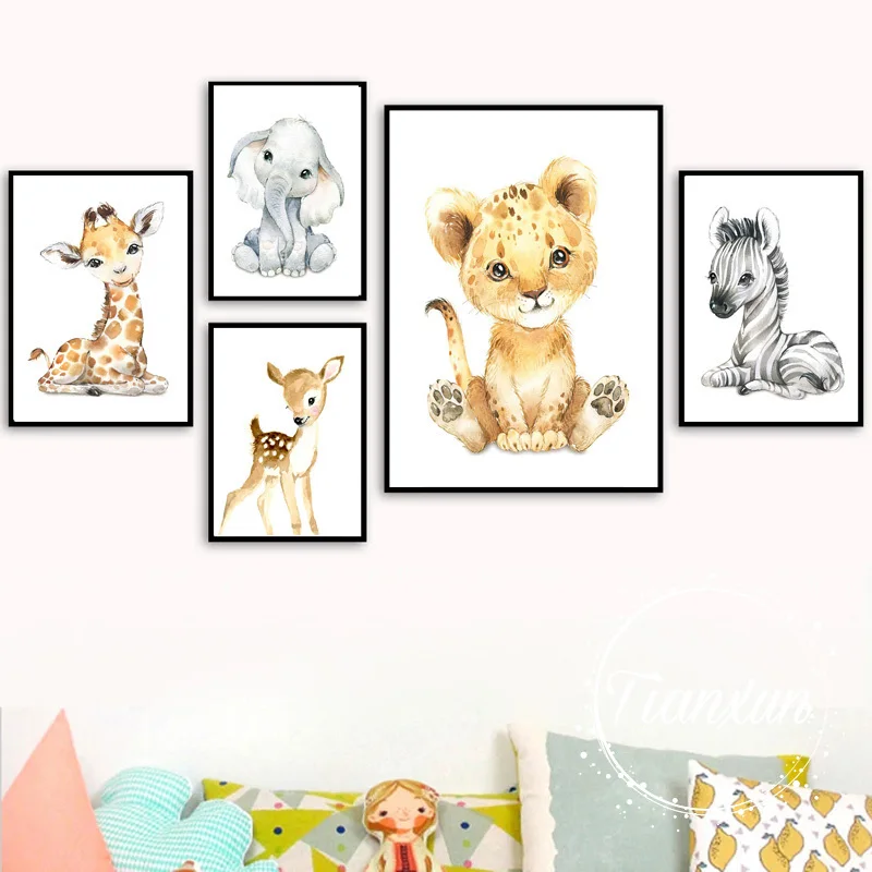 Милые Мультяшные Животные декоративные картины лев ребенок слон Дет...