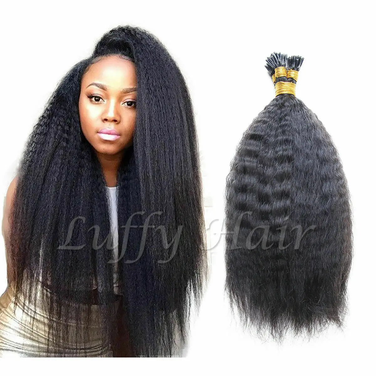 Кудрявые прямые I-образные человеческие волосы для наращивания, предварительно скрепленные бразильские волосы без повреждений, грубая палочка Yaki I Tip пряди волос, 100 прядей, 100 г